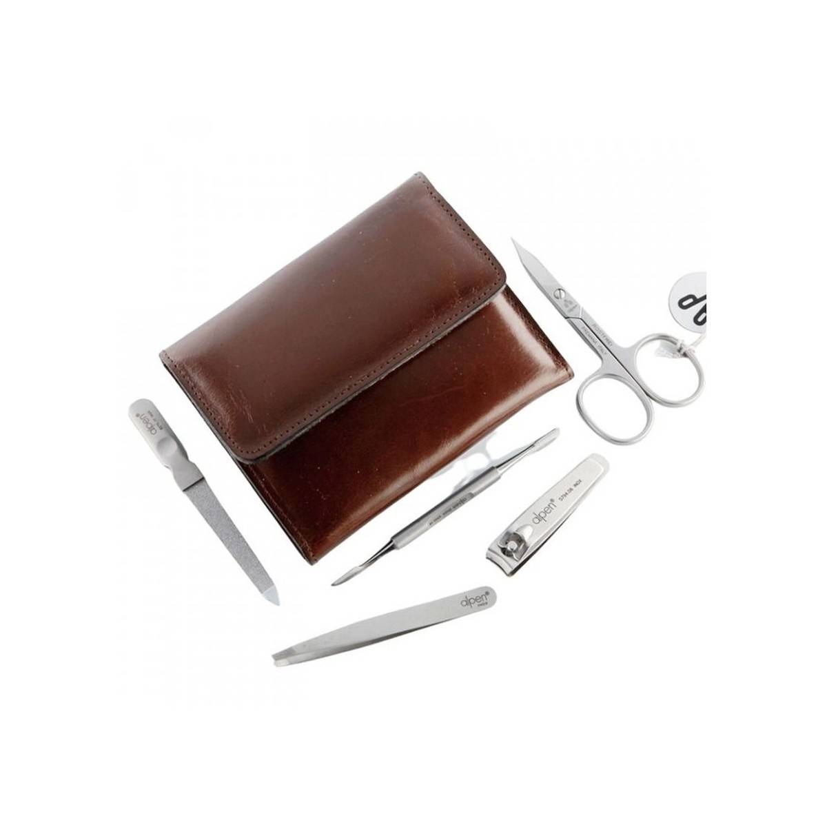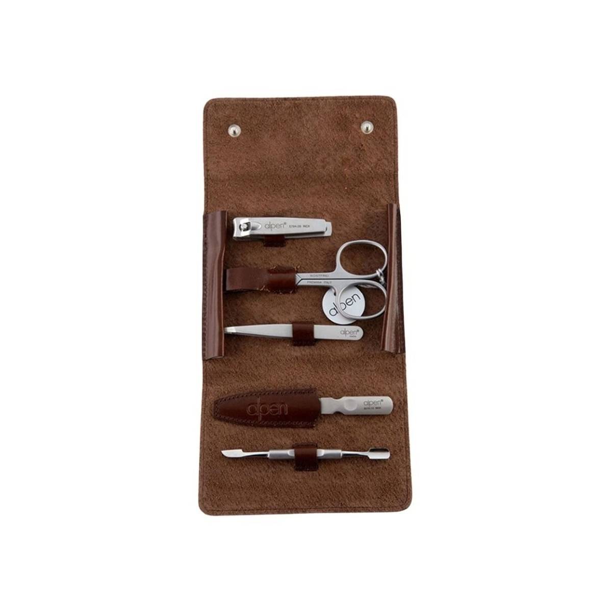 - Elegantní pětidílná manikúrní sada v luxusním koženém pouzdře.
