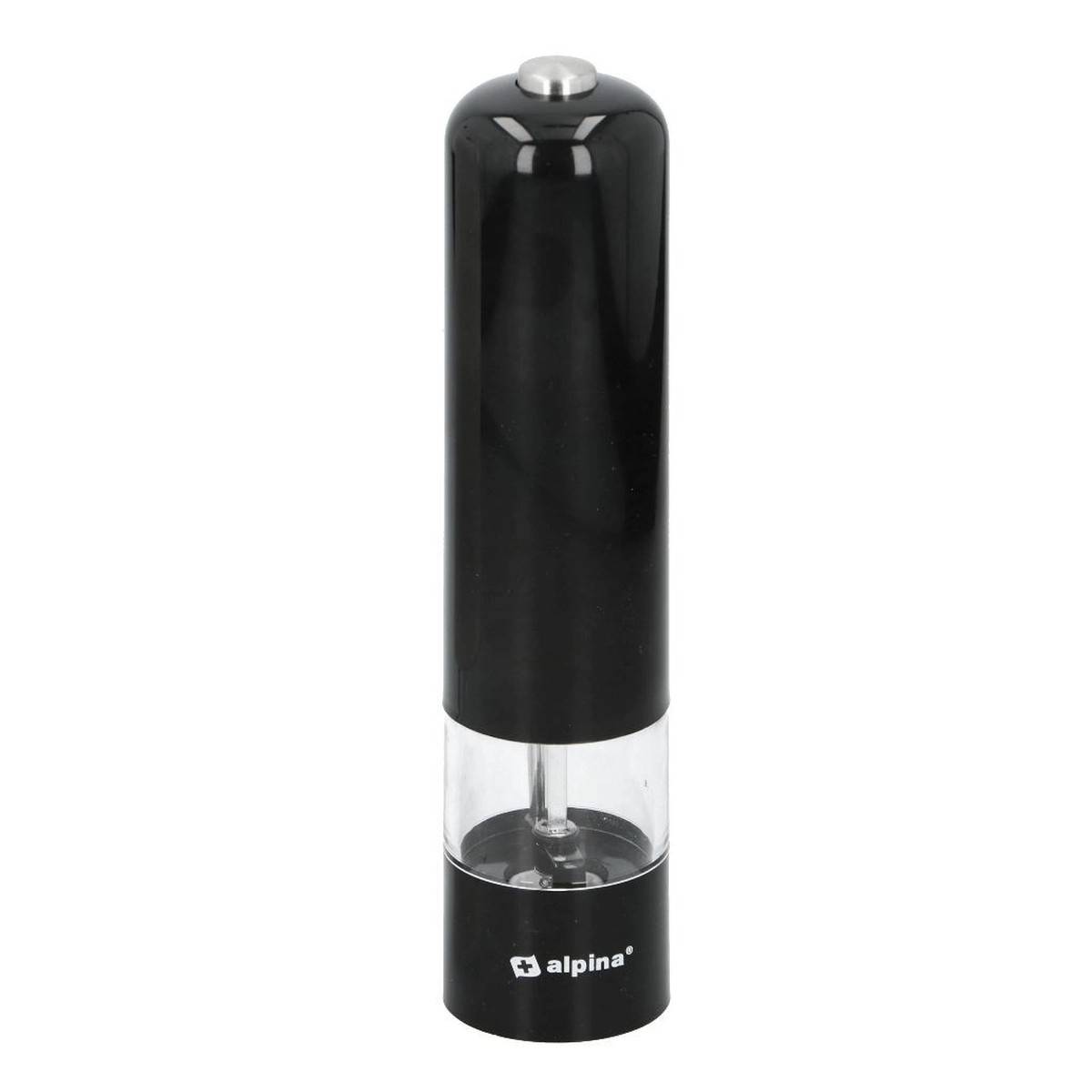 Alpina mlýnek na sůl a pepř Tento elektrický mlýnek na pepř a sůl od Alpina je nepostradatelný v každé kuchyni. Mlýnky můžete ovládat tlačítkem nahoře. Specifikace: Barva: černá Materiál: hliník, ABS Napájení: 4x AA baterie (nejsou součástí balení) Průměr: 5,2 cm Výška: 22,3 cm