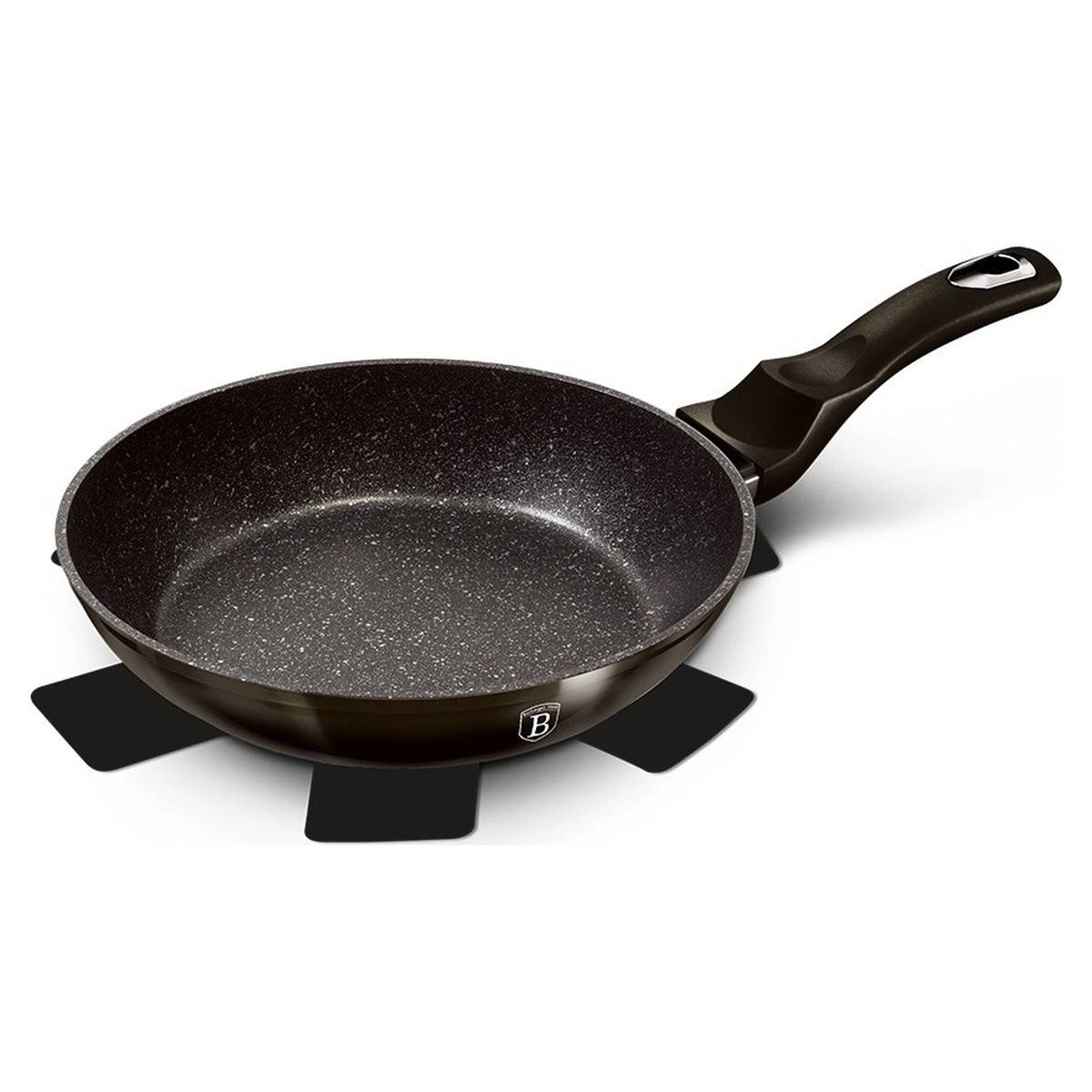 - univerzální pánev s mramorovým povrchem a ergonomickou rukojetí v lesklé černé barvě