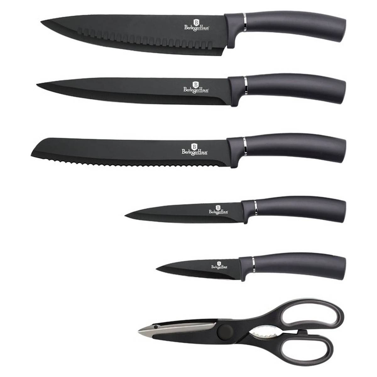 - nože mají ergonomicky tvarované měkčené rukojeti s pevným úchopem
