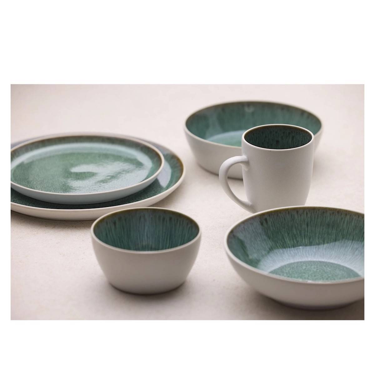 - Estetické provedení kombinuje základní bílou s výraznou zelenou glazurou.