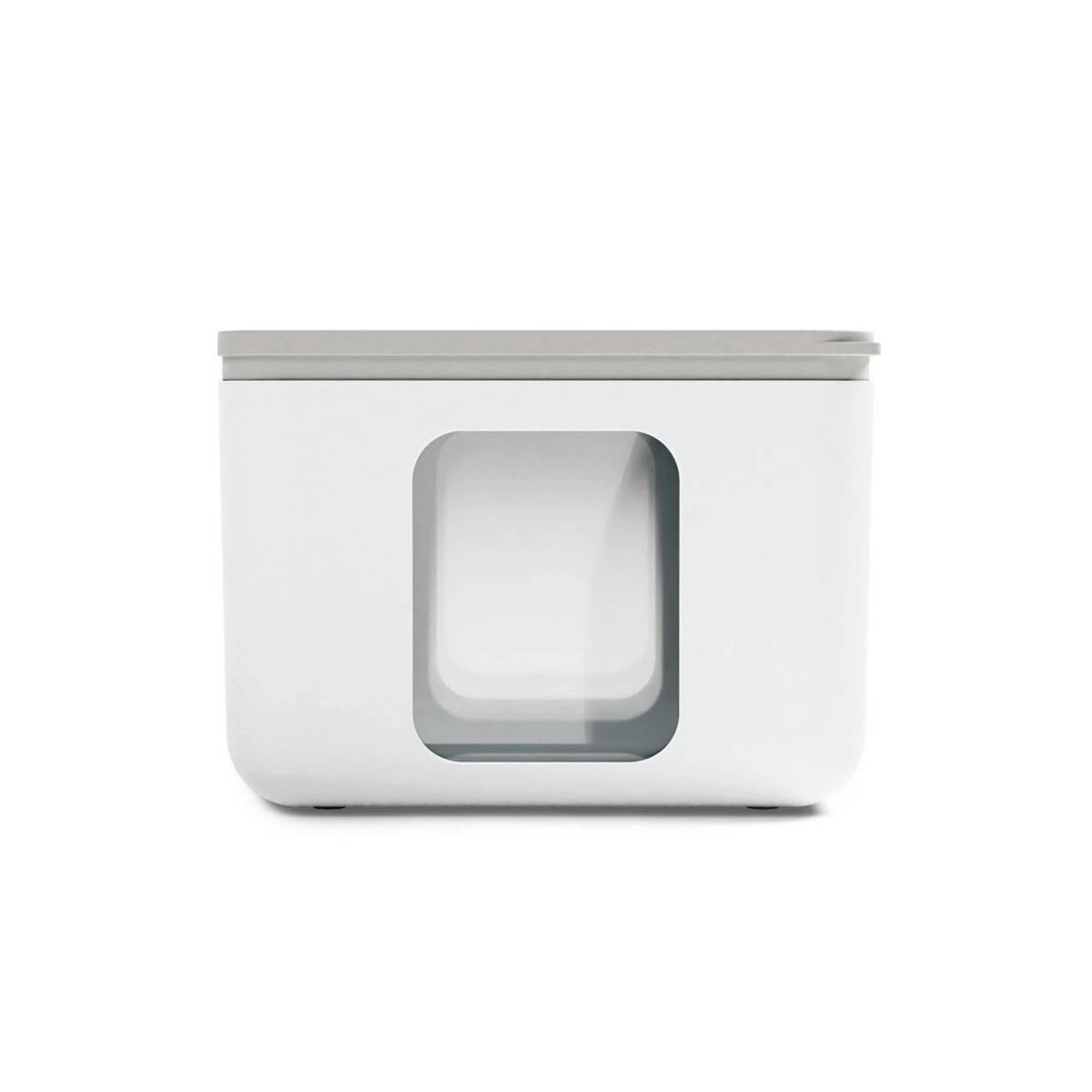 - Průhledné víko a boční okénko umožňují okamžitý vizuální přehled o obsahu bez nutnosti otevírání.