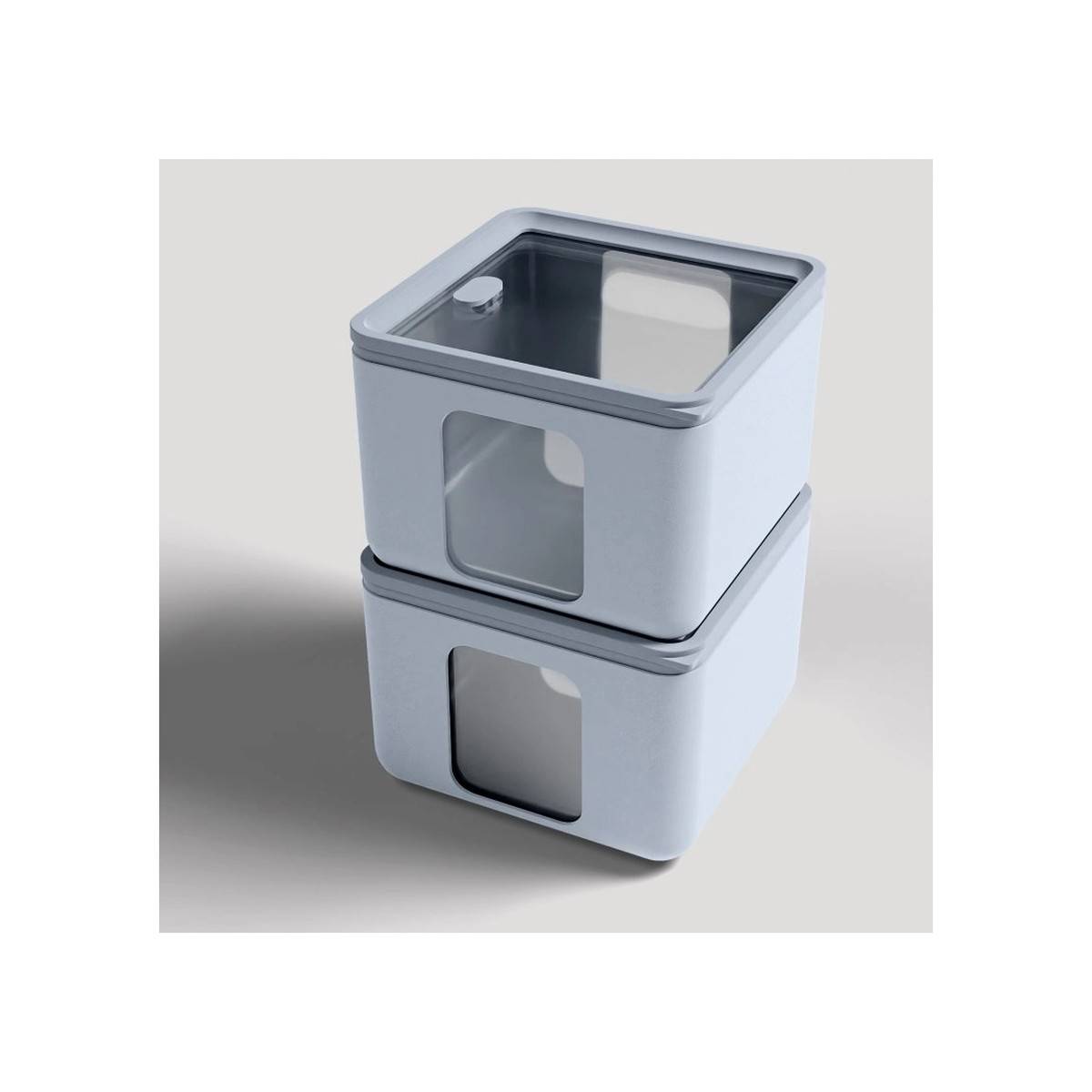 - Průhledné víko a boční okénko zajišťují okamžitý přehled o obsahu bez nutnosti otevírání.