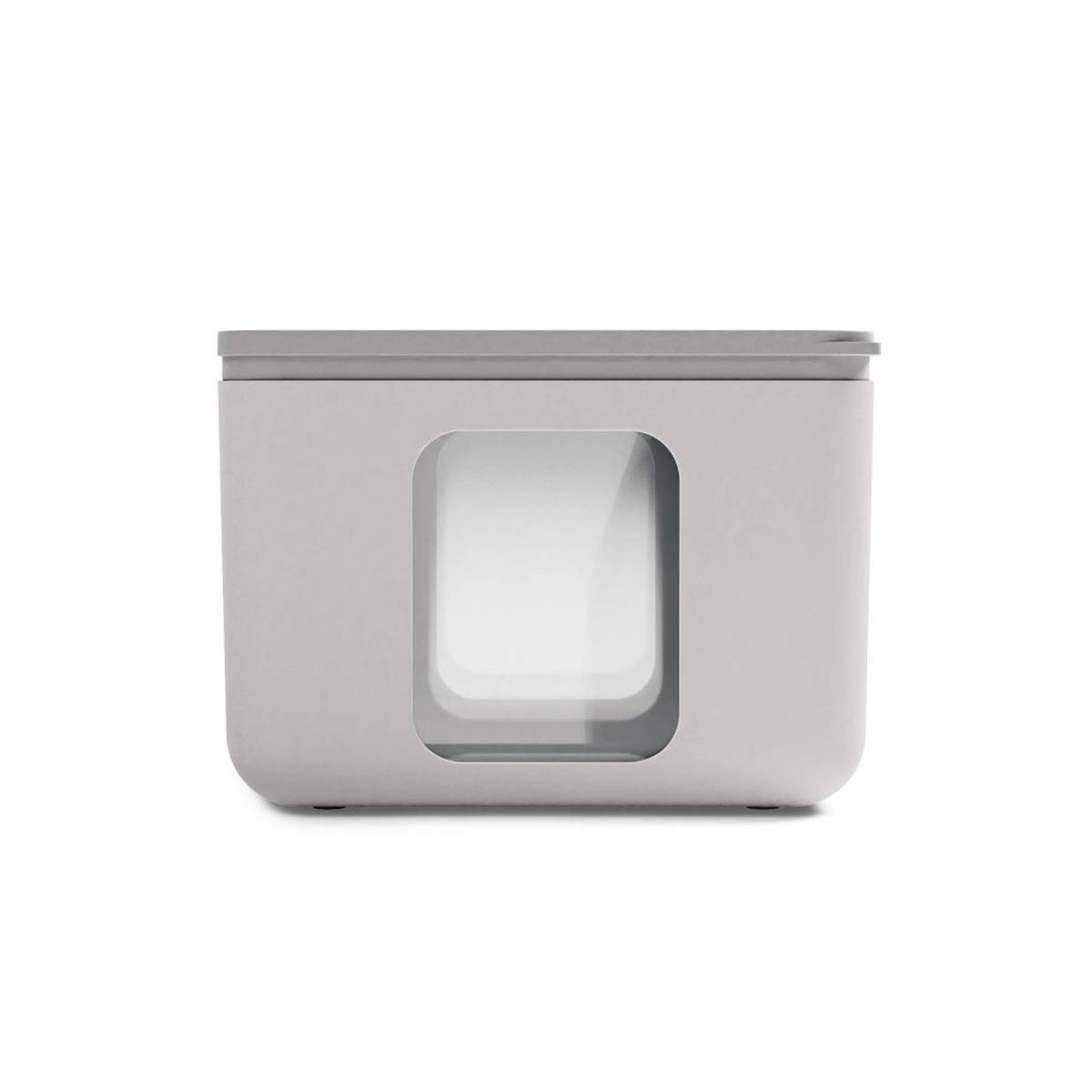 - Díky průhlednému víku a bočnímu okénku máte vždy okamžitý přehled o obsahu nádoby.