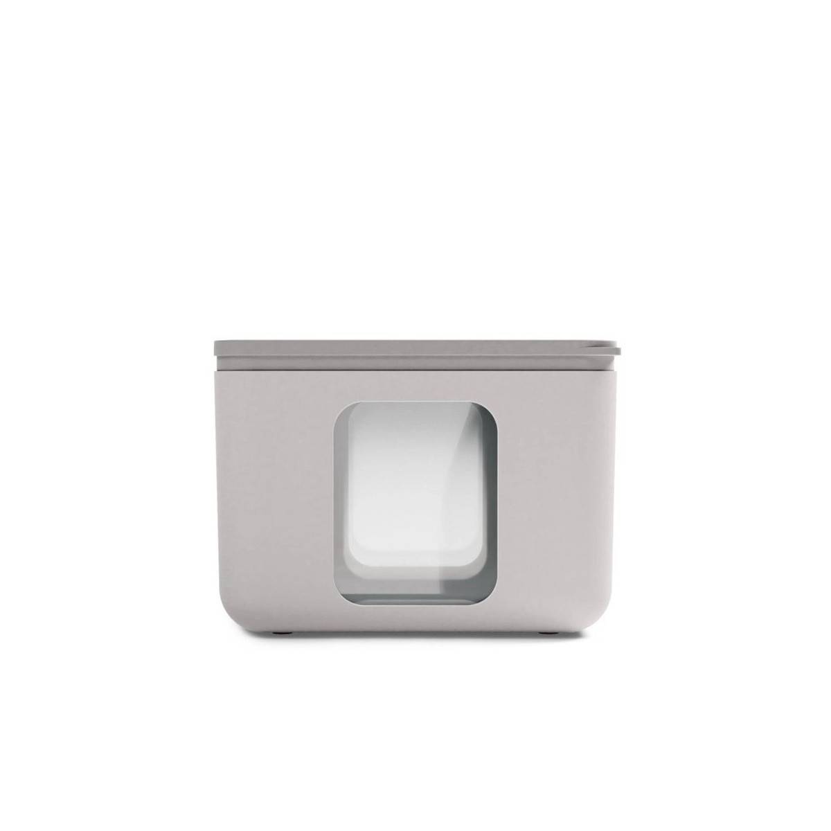- Průhledné víko a praktické boční okénko umožňují okamžitý přehled o obsahu bez nutnosti otevírání.