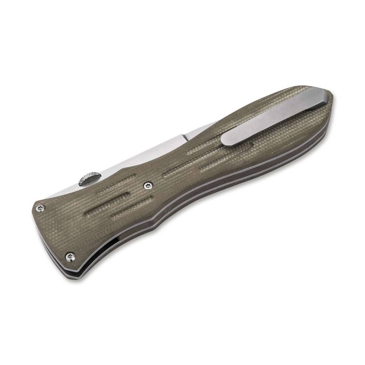 - Rukojeť je vyrobena z odolného materiálu Micarta, který zajišťuje komfortní úchop.