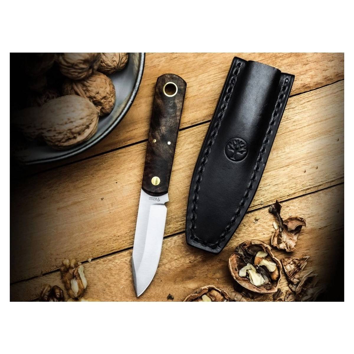 - Čepel je vyrobena z ledově kalené oceli AEB-L, která nabízí vynikající řezné schopnosti a snadné přebroušení.