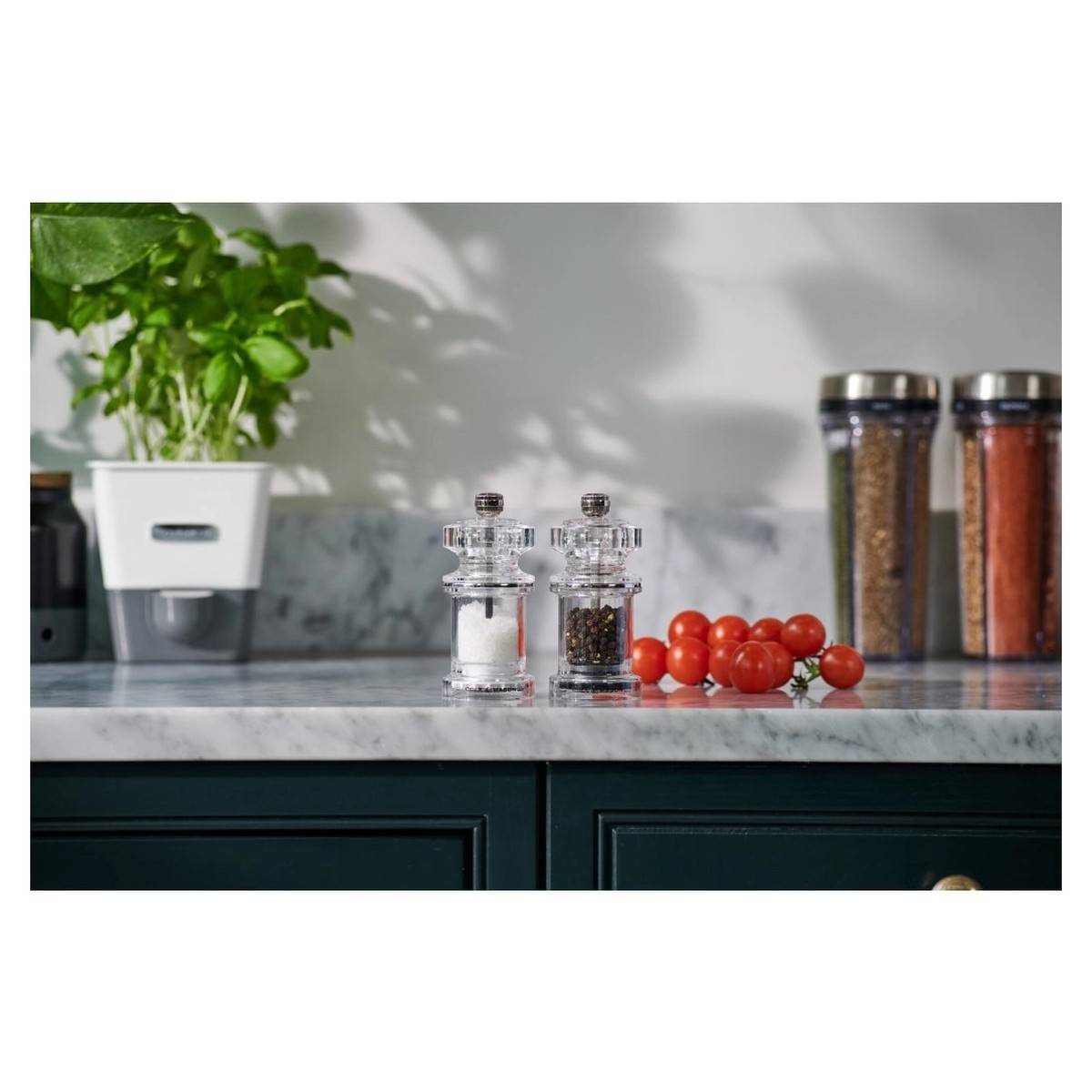 - Průhledné tělo mlýnku zajišťuje okamžitý přehled o množství náplně.