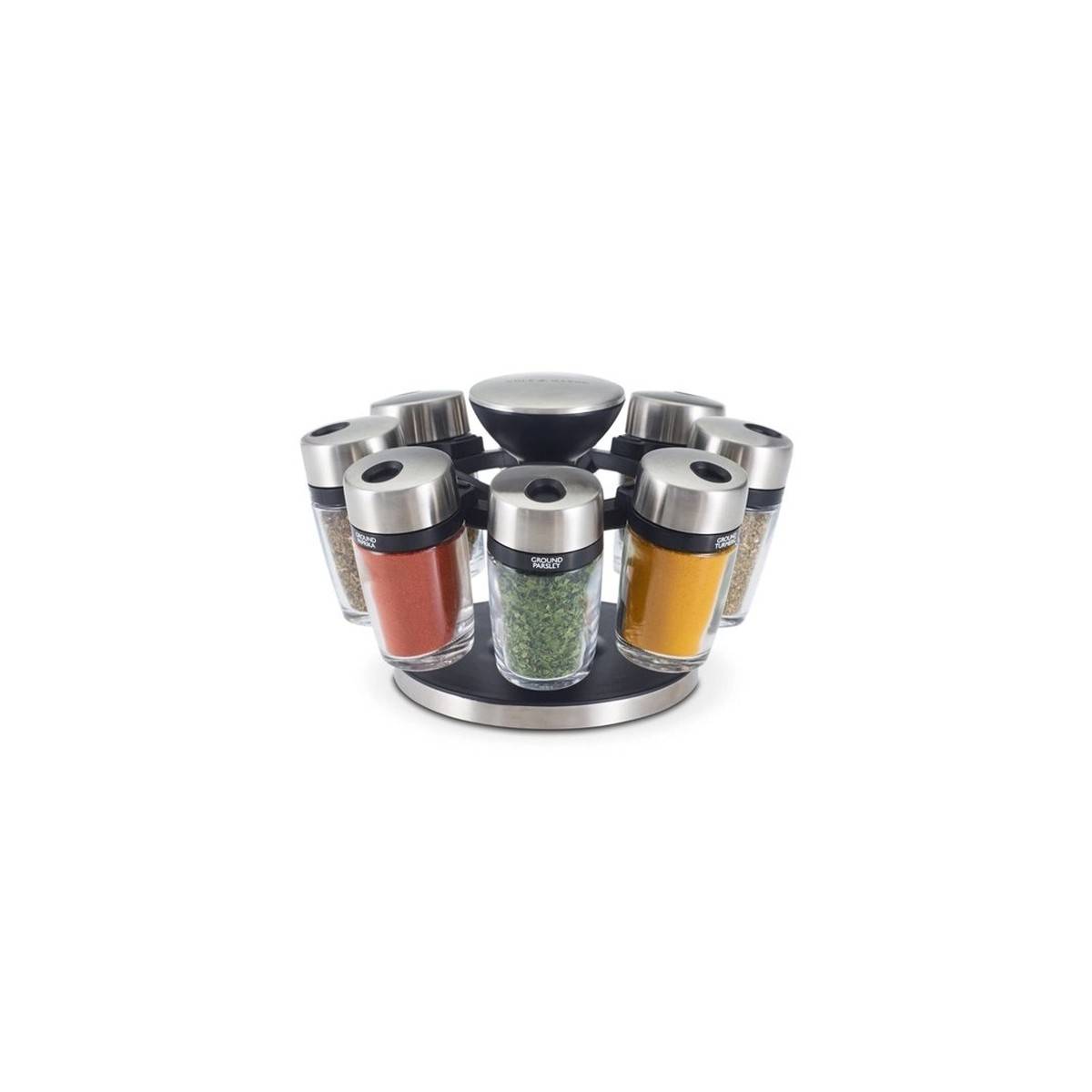 - Praktický organizér pro osm druhů koření s otočnou základnou.