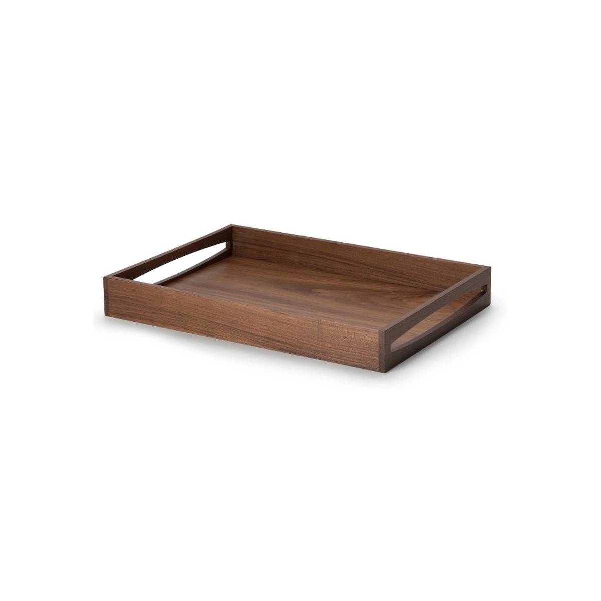 - Obdélníkový servírovací tác vyrobený z masivního ořechového dřeva.