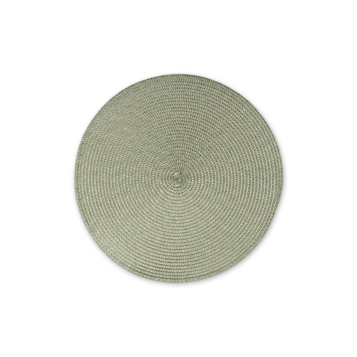 - Kruhová podložka v pleteném designu v zeleném odstínu.