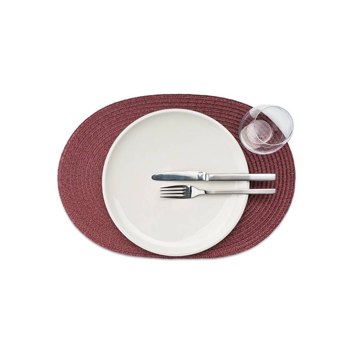 - Oválná podložka na stůl v sytě vínovém odstínu.