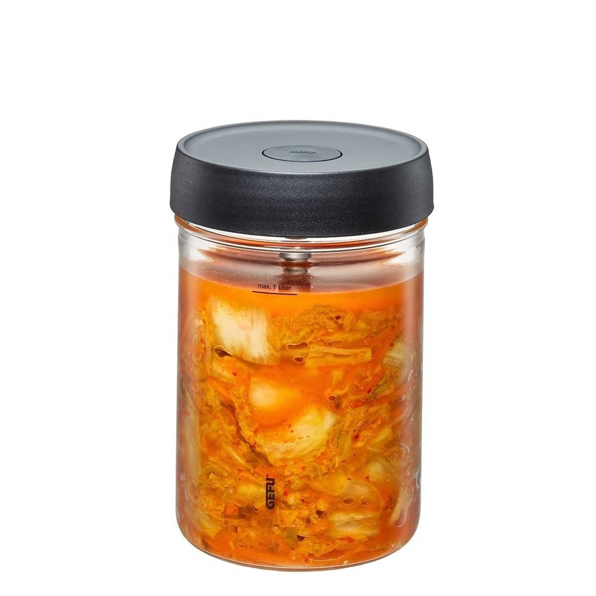- V jediné nádobě zeleninu zkvasíte a po uzavření ventilu i bezpečně uskladníte v lednici.