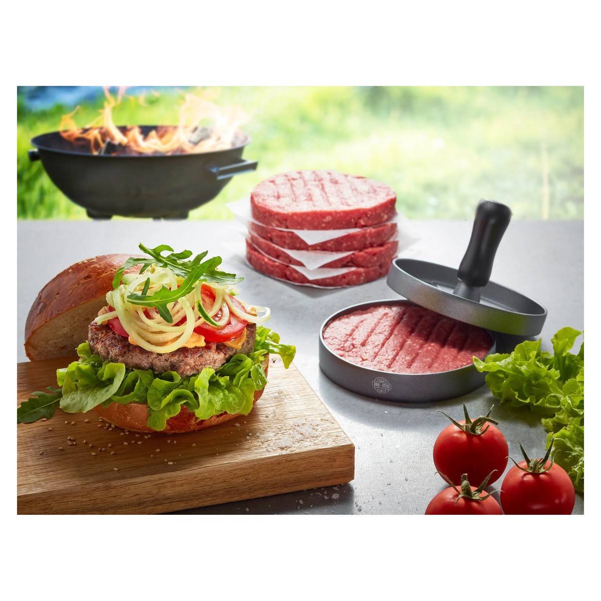 Lis na burgery precizně tvaruje šťavnaté, dokonale okořeněné maso.