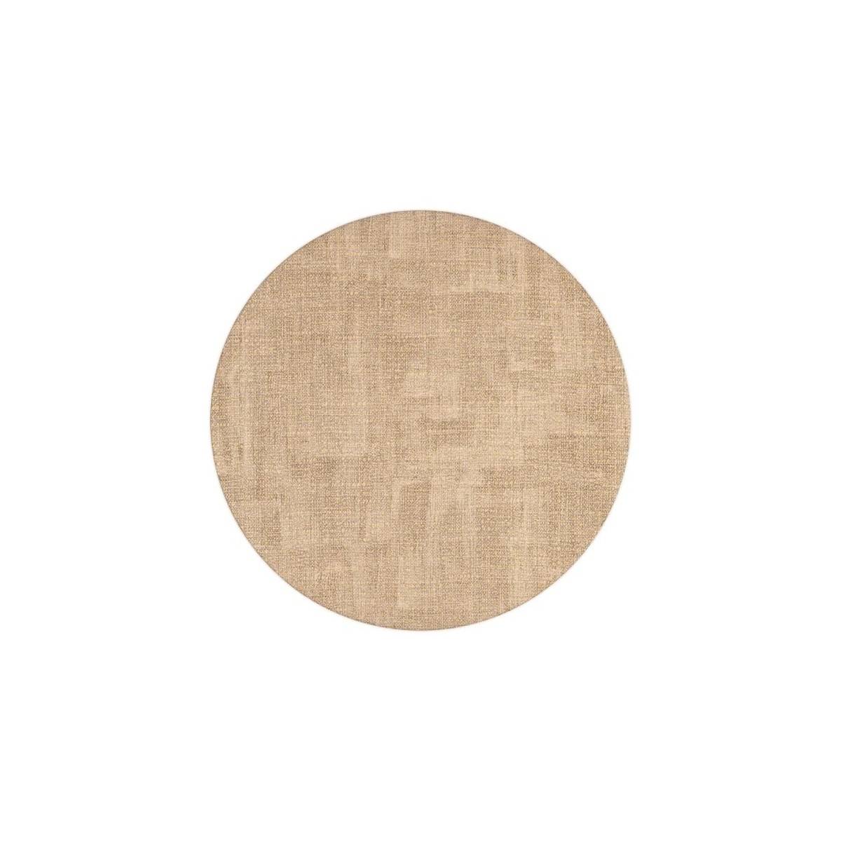 - Kulaté prostírání ve zlatém tónu pro moderní uspořádání stolu.