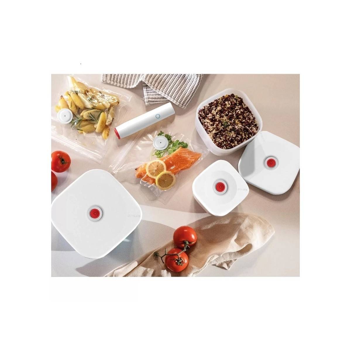 - Minimalizuje množství vyhozeného jídla, protože vakuové skladování (bez vzduchu) brání rychlému kažení.