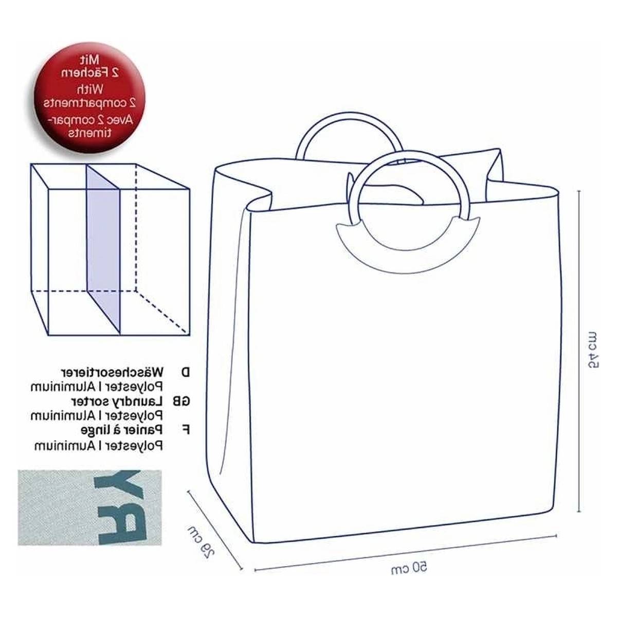 Skvělá alternativa k monotónnímu boxu na prádlo: třídička prádla Palma vyrobená z polyesteru s potiskem Laundry. Pomocí 2 stylových hliníkových držadel lze sáček na prádlo snadno přenášet. Pytel na prádlo je 50 cm široký, 29 cm hluboký a 54 cm vysoký. Barva polární modrá.100% polyester 50x29cm 54cm h 2 přihrádky