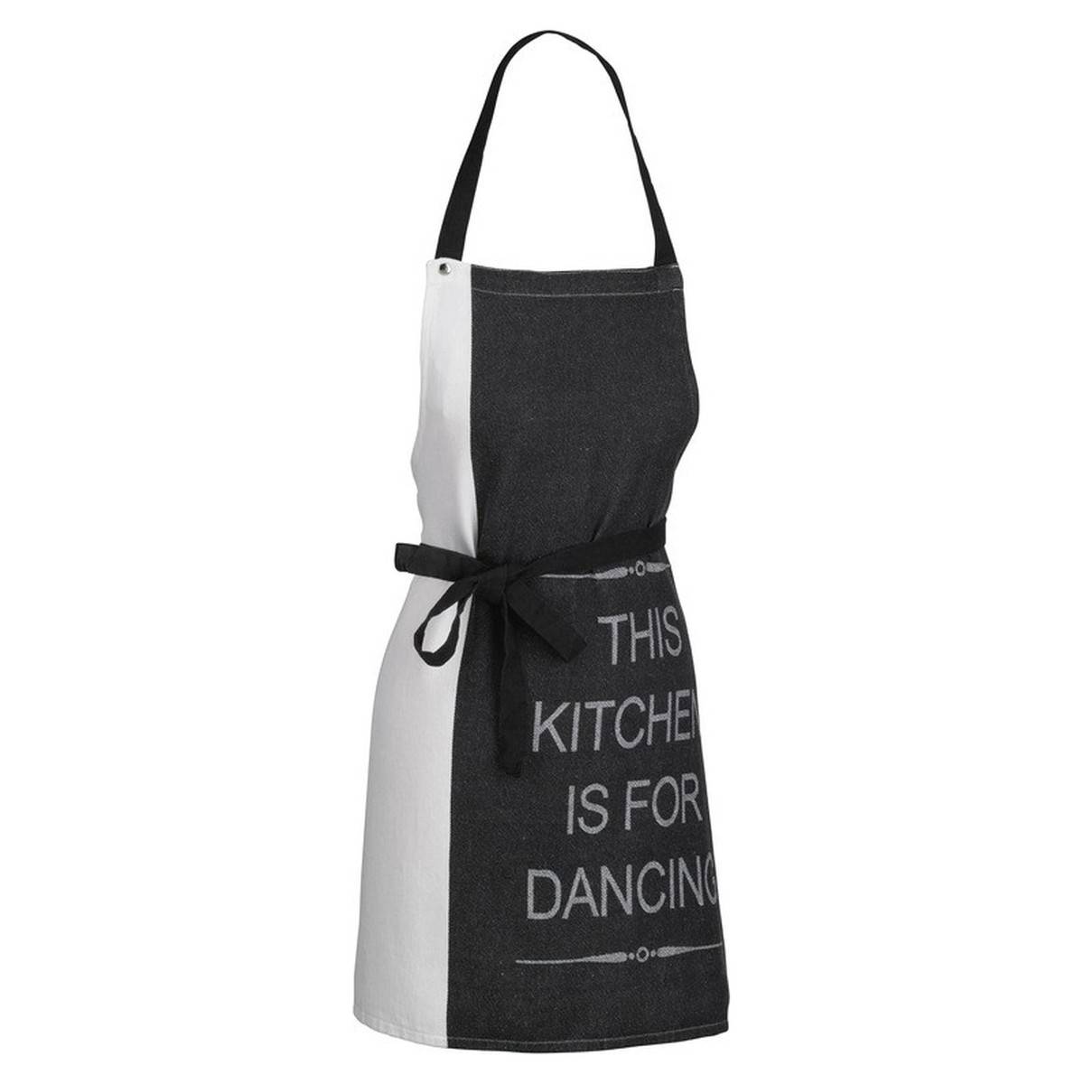 Z kolekce kuchyňského textilu Gianna: kvalitní kuchyňská zástěra ze 100% bavlny, tkaná, v barvě černá/bílá. Výrazným detailem je nápadně umístěný nápis na přední straně: This Kitchen is for Dancing. Rozměry: 80 x 67 cm. Zástěra je součástí rozsáhlé série kuchyňských textilií od kela.100% bavlna 80x67cm