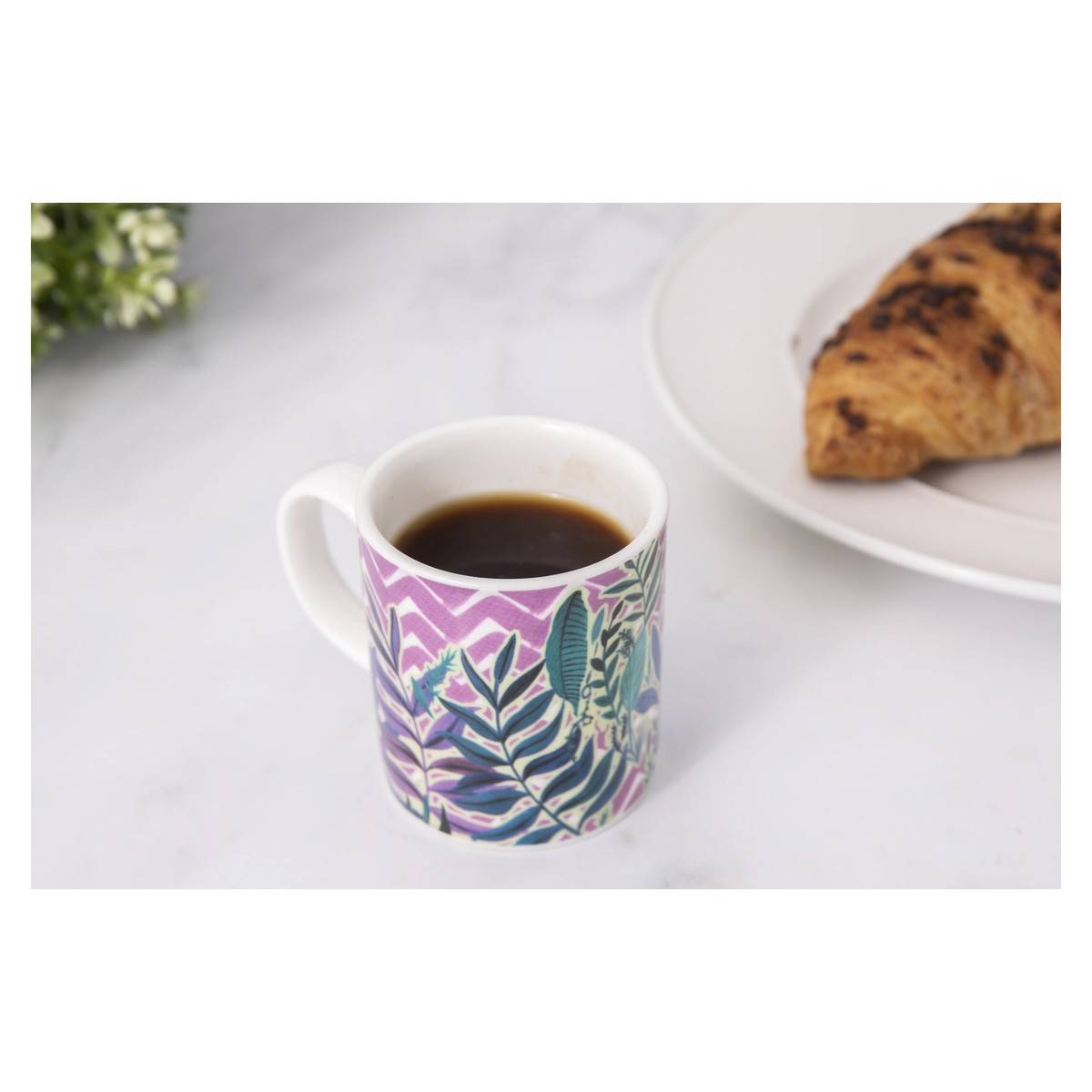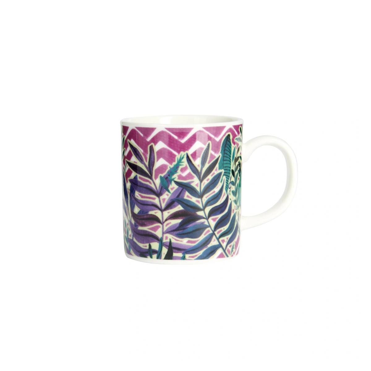 - Zdobí ho originální motiv s exotickými listy na abstraktním pozadí, navržený ve Velké Británii.