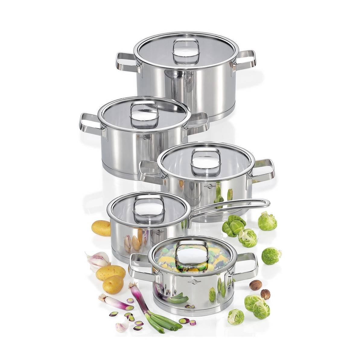- Sada obsahuje pět hrnců v různých velikostech, takže vždy máte po ruce ten správný.