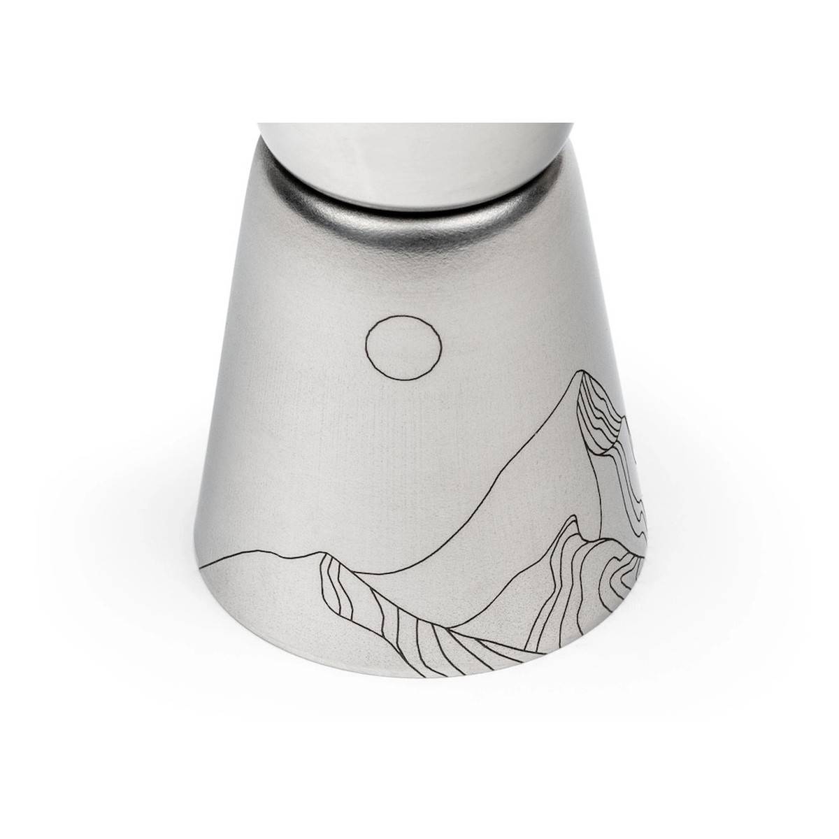 - Design doplněný o detailní laserovou rytinu s motivem horské krajiny.