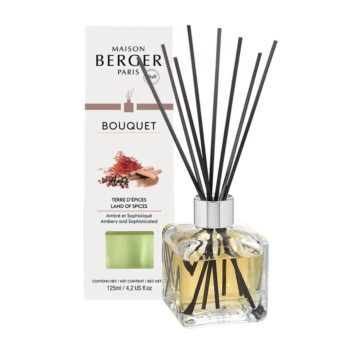 Tyčinkový aroma difuzér ve tvaru krychle francouzské značky Maison Berger Paris je již naplněný 125 ml interiérového parfému s vůníZemě koření. V balení najdete také 8 kusů polymerových vonných tyčinek.
