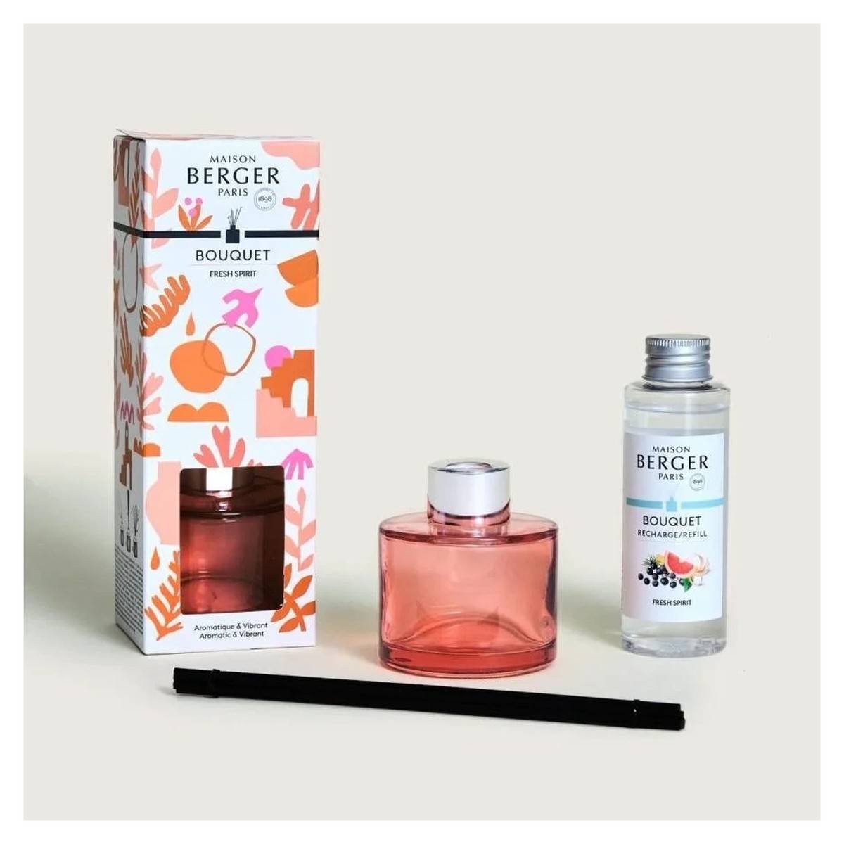 - Dárková sada obsahuje mini skleněný difuzér BERGER Estival.