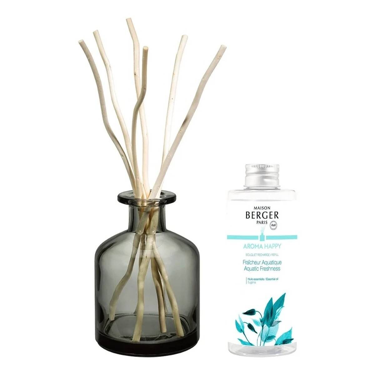 - Obsahuje 180 ml interiérového parfému Aroma Happy – Svěžest vody a 6 kusů vrbových vonných tyčinek.