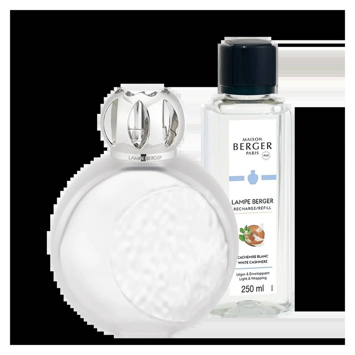 Dárková sada pro pohodlný začátek s lampami a parfémy Maison Berger Paris obsahuje skleněnou katalytickou lampu Astral a interiérový parfém Bílý kašmír o objemu 250 ml. Ideální pro chvíle odpočinku. Hlavu parfému tvoří bergamot, vodní tóny a dřevitý kašmeran. Srdce tvoří květinové vůně pomerančového květu, jasmínu a ylang-ylang. Základem parfému jsou pak pačuli, santalové dřevo a bílé pižmo.