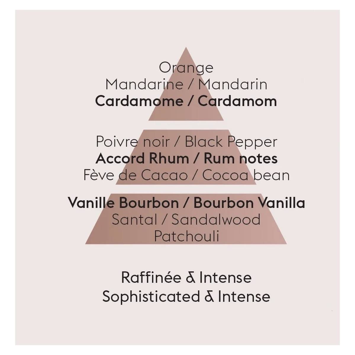 - Vonné akordy tvoří madagaskarská vanilka, rum, pačuli, kakao a svěží citrusové tóny.