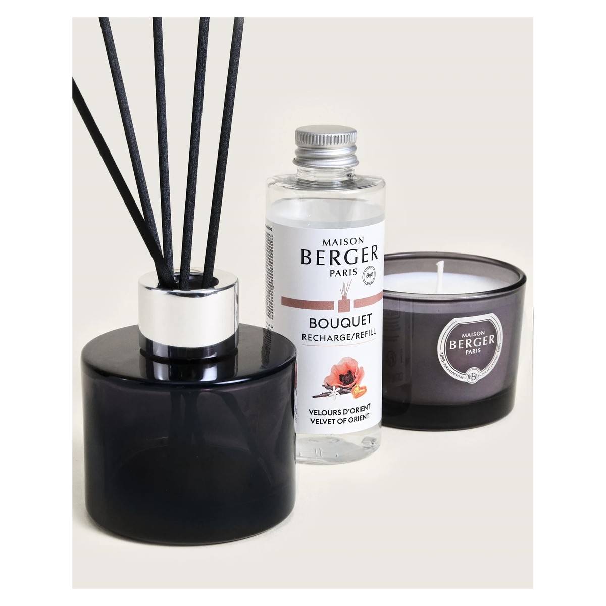 - Set doplňuje vonná mini svíčka o váze 80 g, laděná do stejného orientálního parfému.