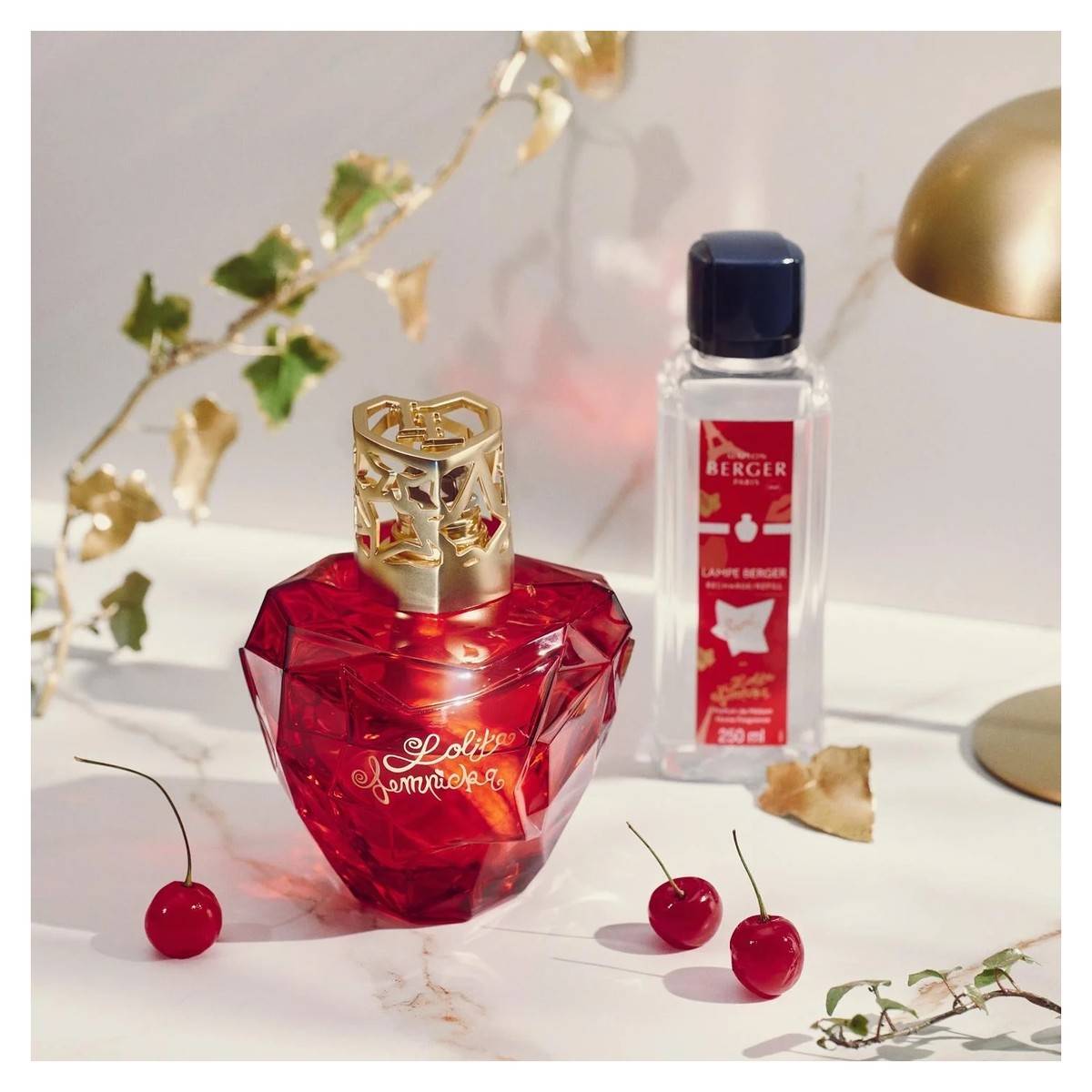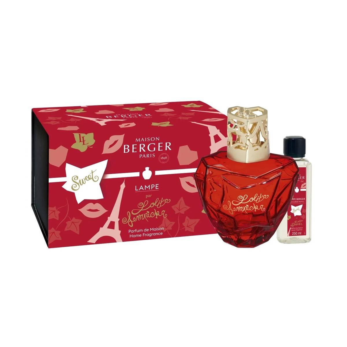 - Součástí je designová katalytická lampa Lolita Lempicka z červeného skla, zdobená zlatou korunkou ve tvaru srdce.
