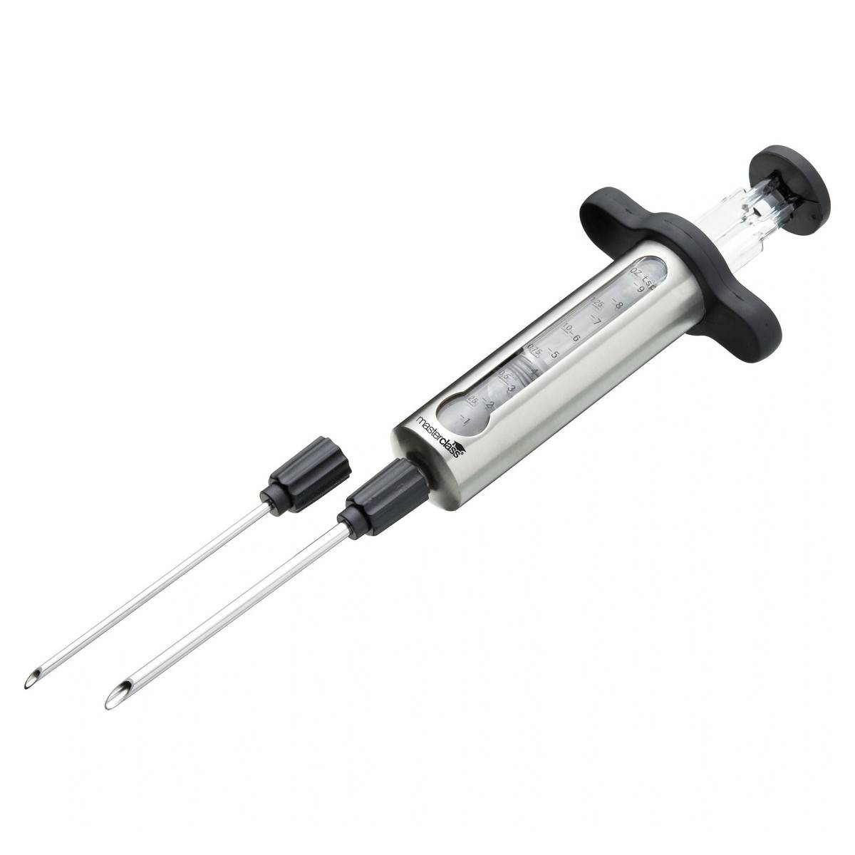 - Sada obsahuje dvě vyměnitelné jehly, jednu tenkou na tekuté marinády a jednu silnější na hustší omáčky.