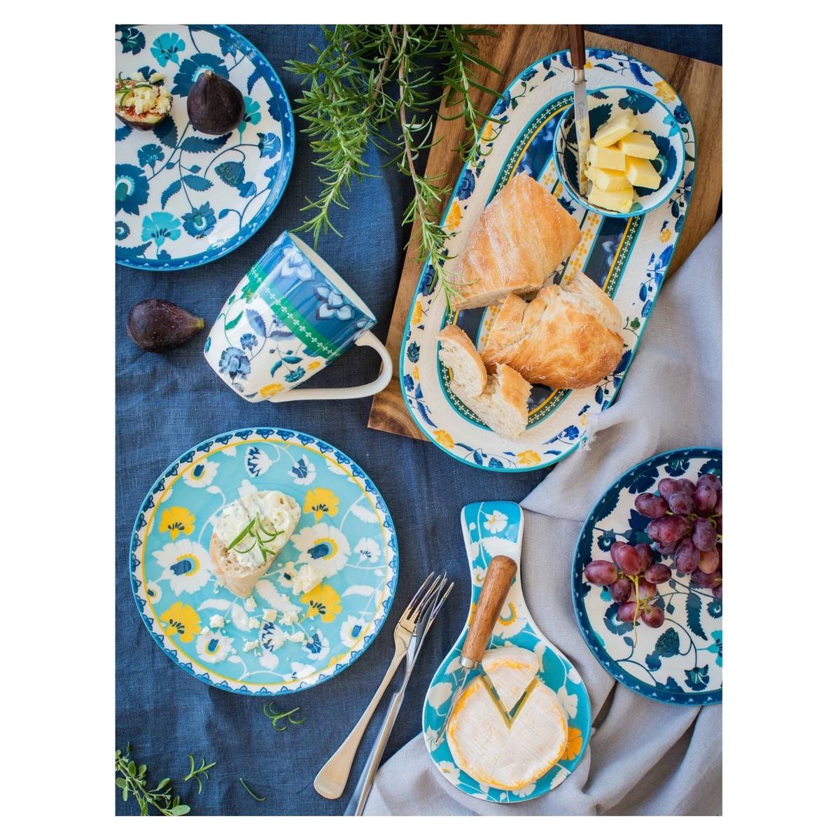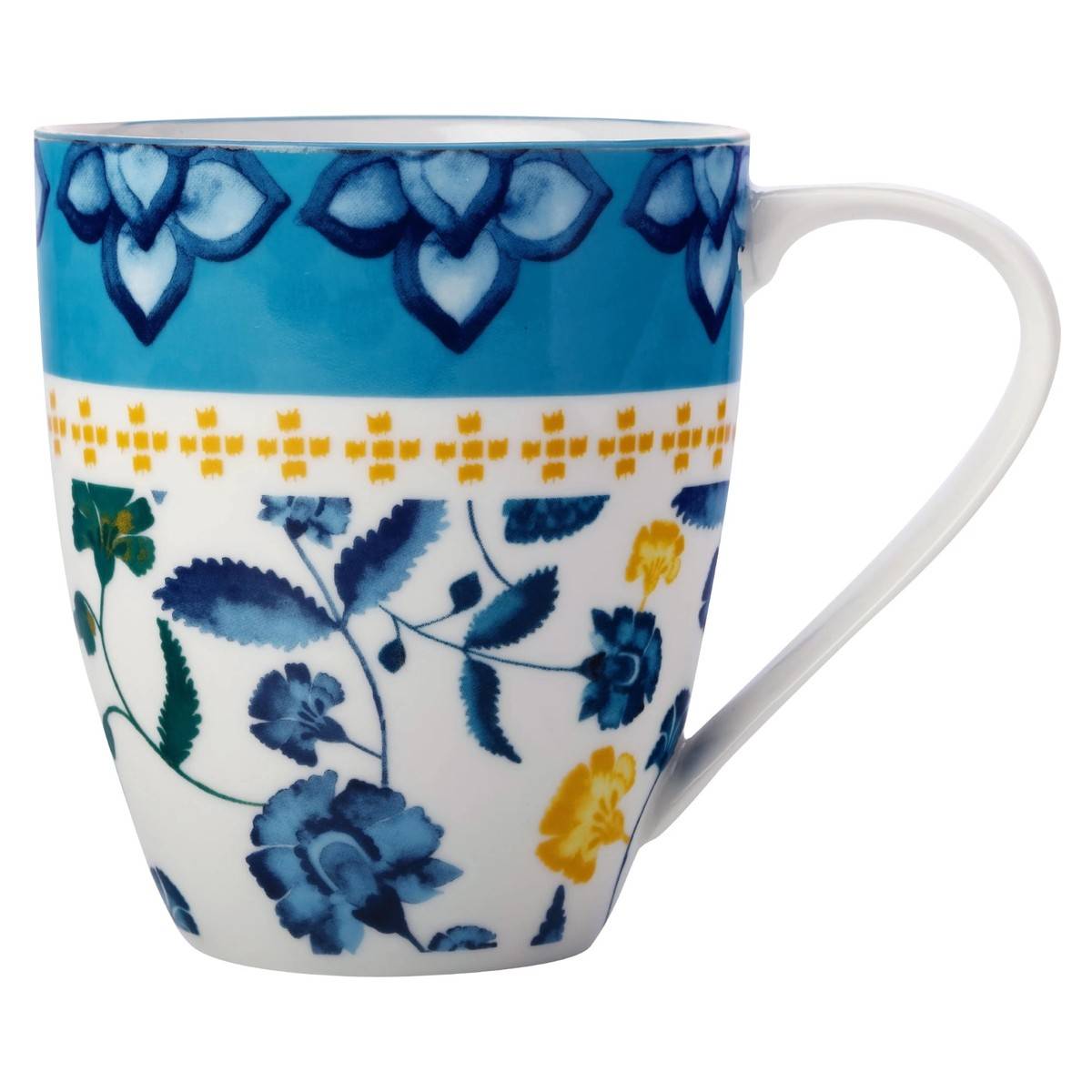 - White with blue/yellow print