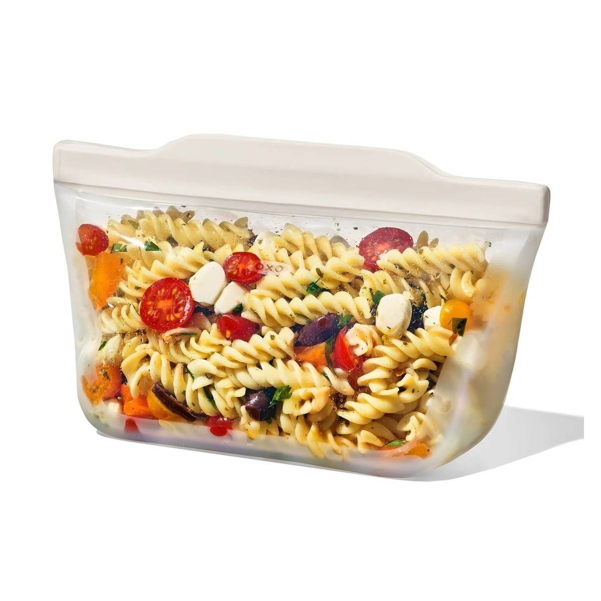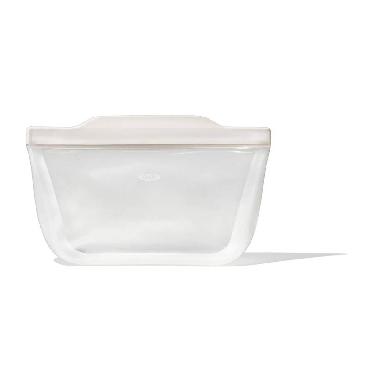 - Opakovaně použitelný silikonový sáček OXO s širokým dnem a objemem 0,95 litru.