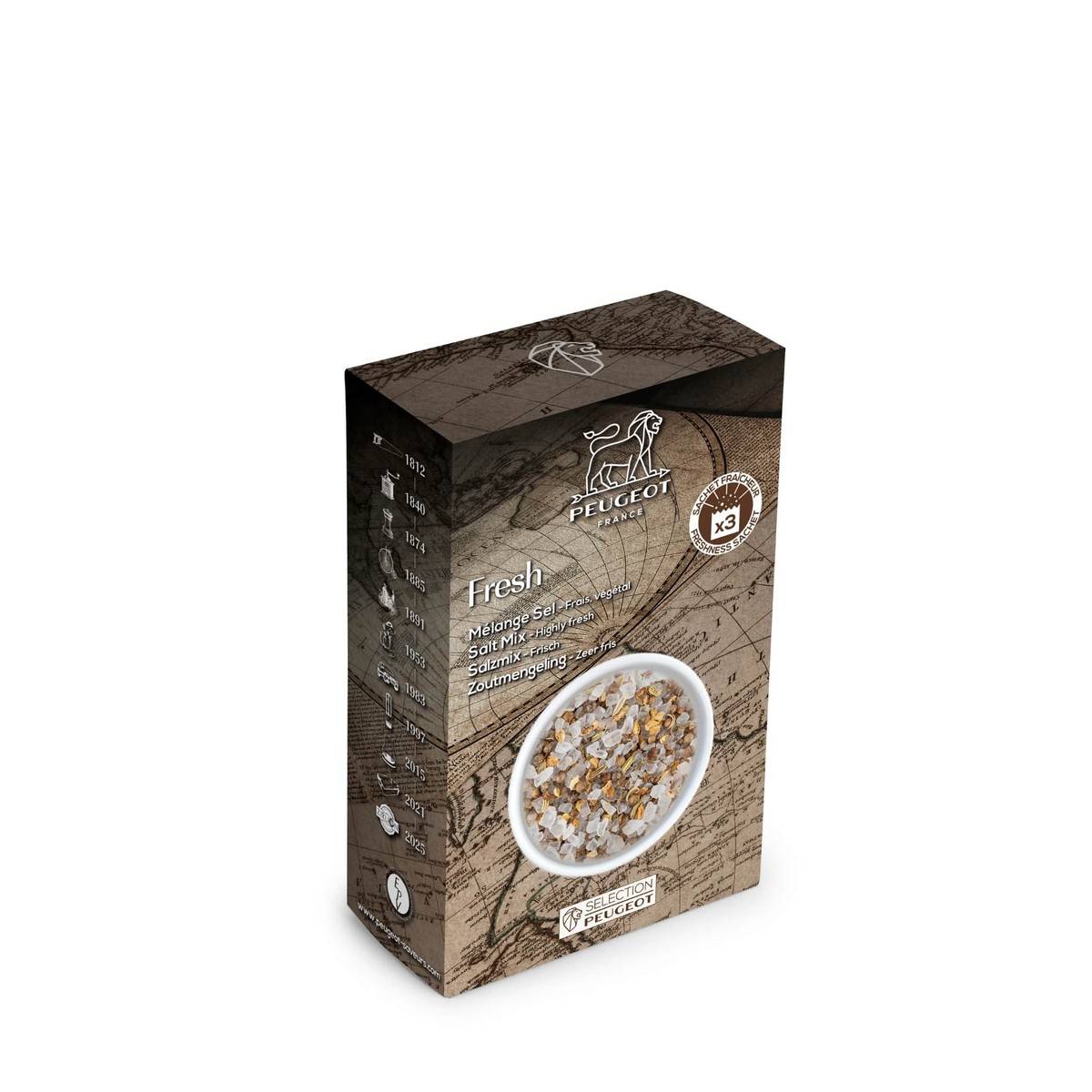 - Peugeot Fresh sůl v balení s celkovou hmotností 135 gramů.