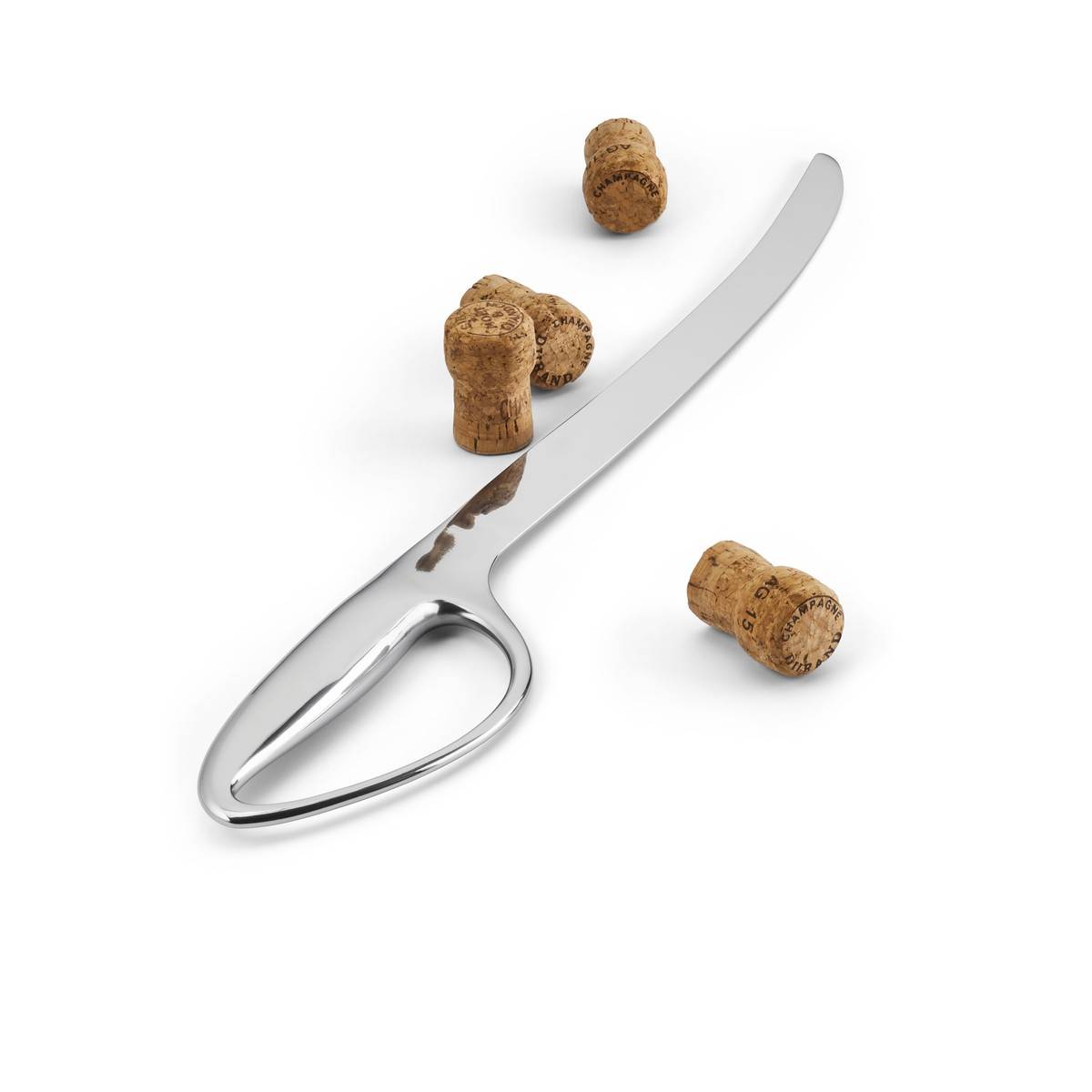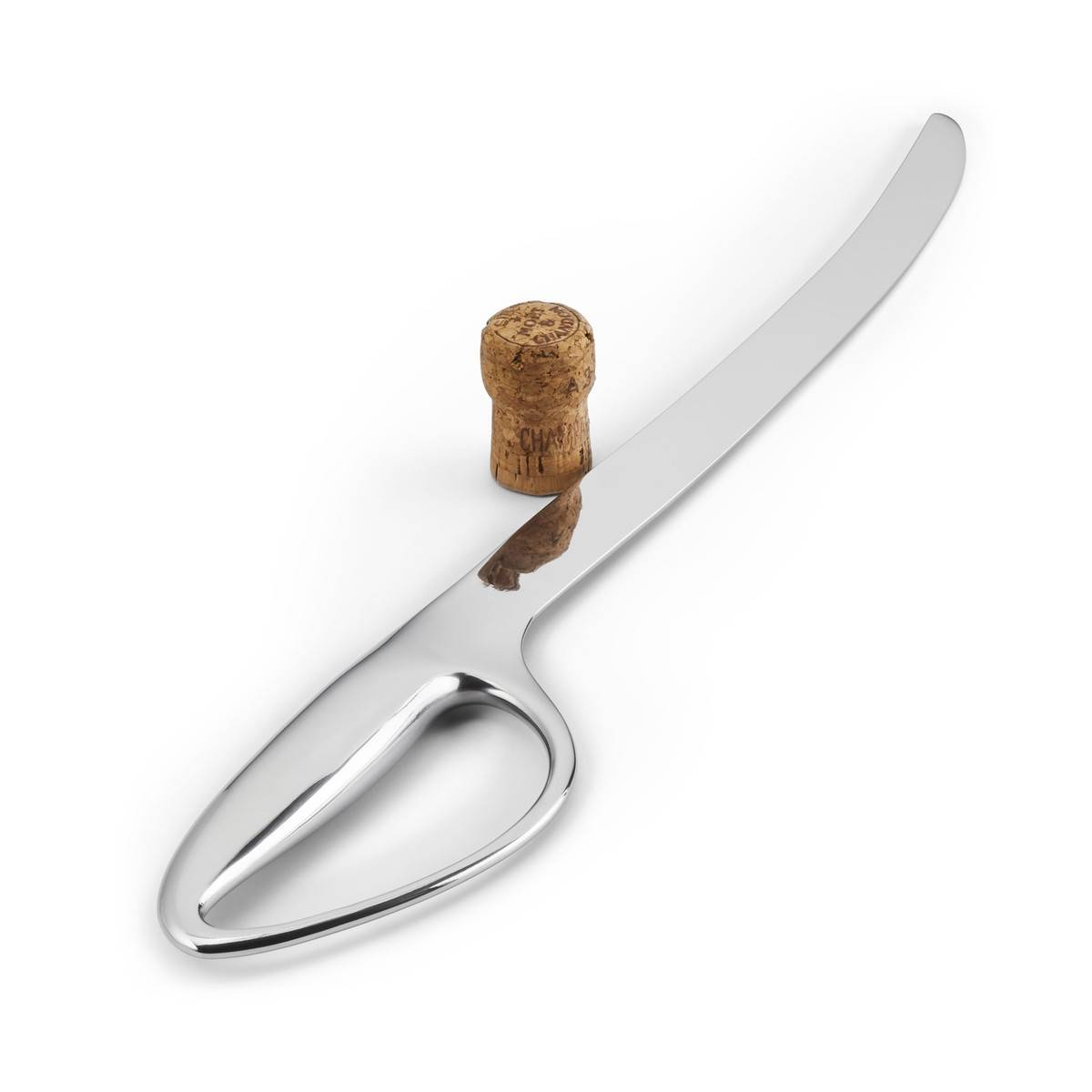 - Pro otevření se šavle vede po těle lahve k hrdlu, kde úderem o nákružek čistě oddělí lahev i se zátkou.