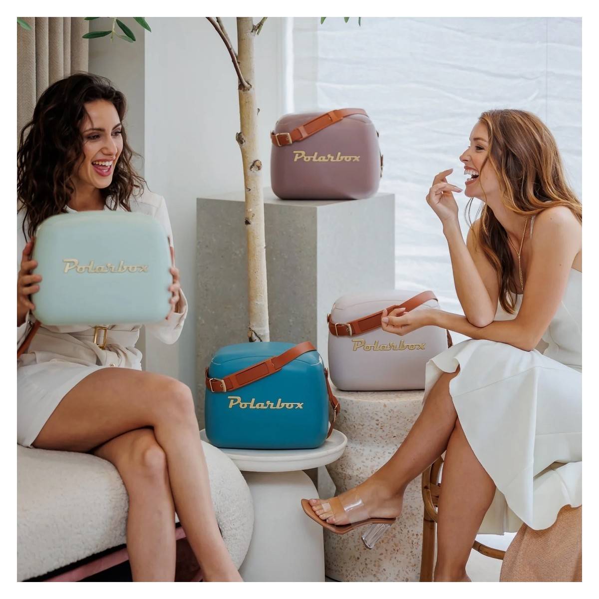 Novinka pro letošní jaro a léto – lehký přenosný chladicí box – kabelka do města v retro designu, edice Classic URBAN, se zlatým nápisem. Vmodrofialovém odstínu bruma, s nastavitelným popruhem z pravé kůže se zlatou přezkou, ladící s nápisem Polarbox na kabelce. Přes rameno či do ruky, vnitřní objem 6 l.