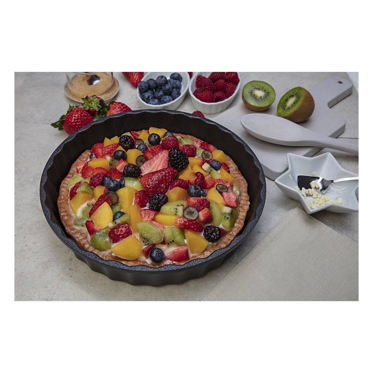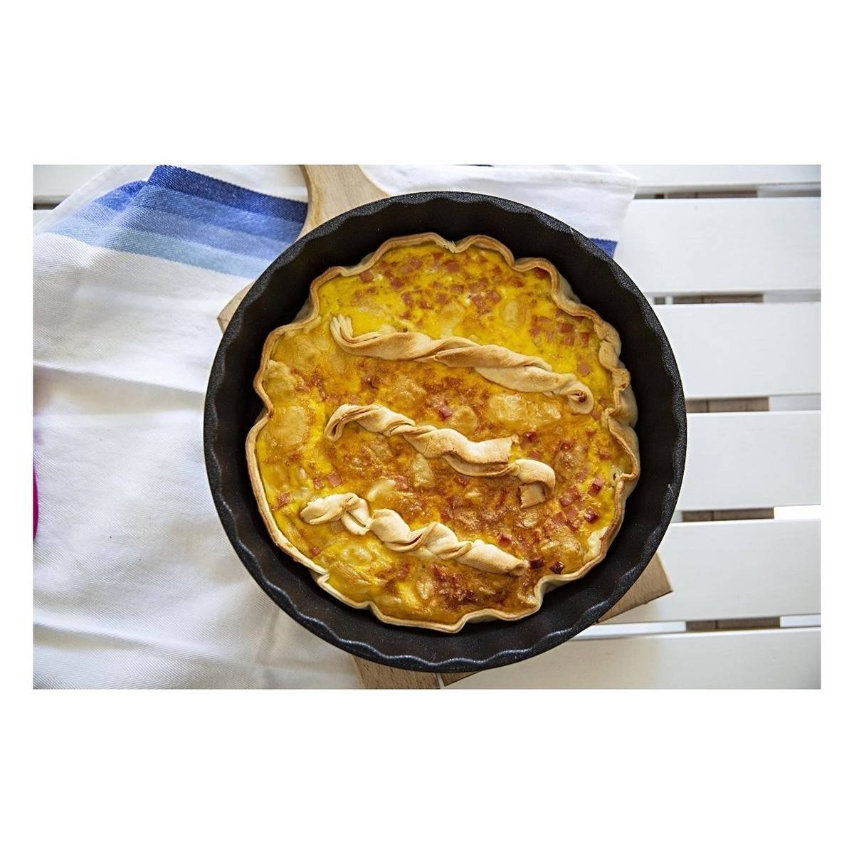 - Vyrobena z tlakově litého hliníku, který zaručuje optimální vedení tepla a dokonale rovnoměrné propečení.