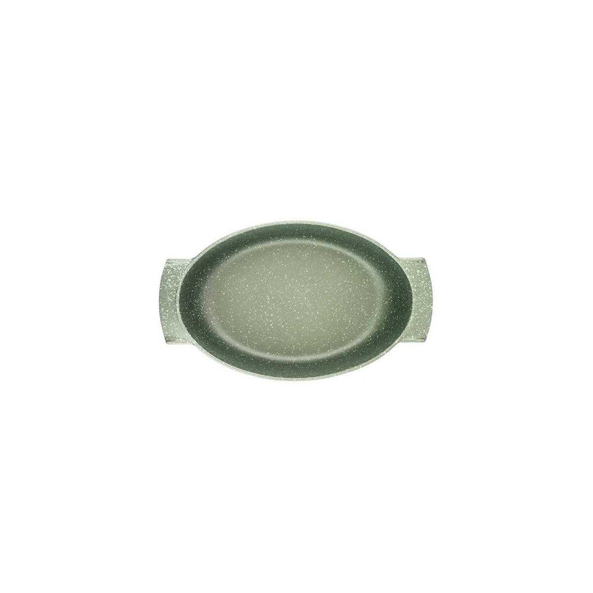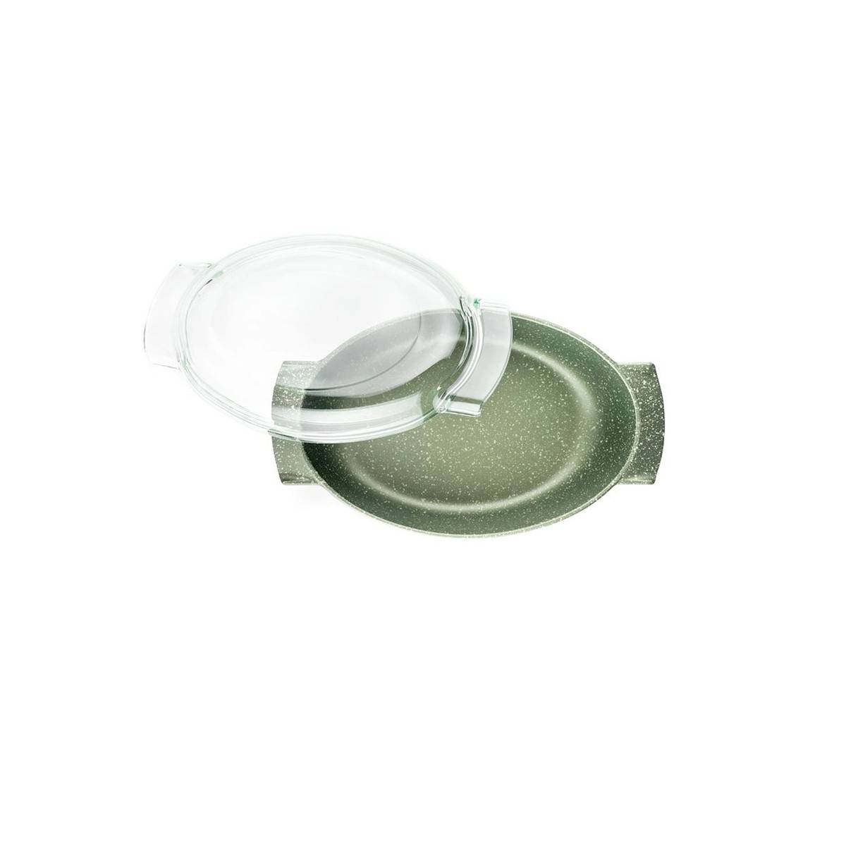 - Oválná pečicí pánev Dr. Green dodávaná s poklicí.