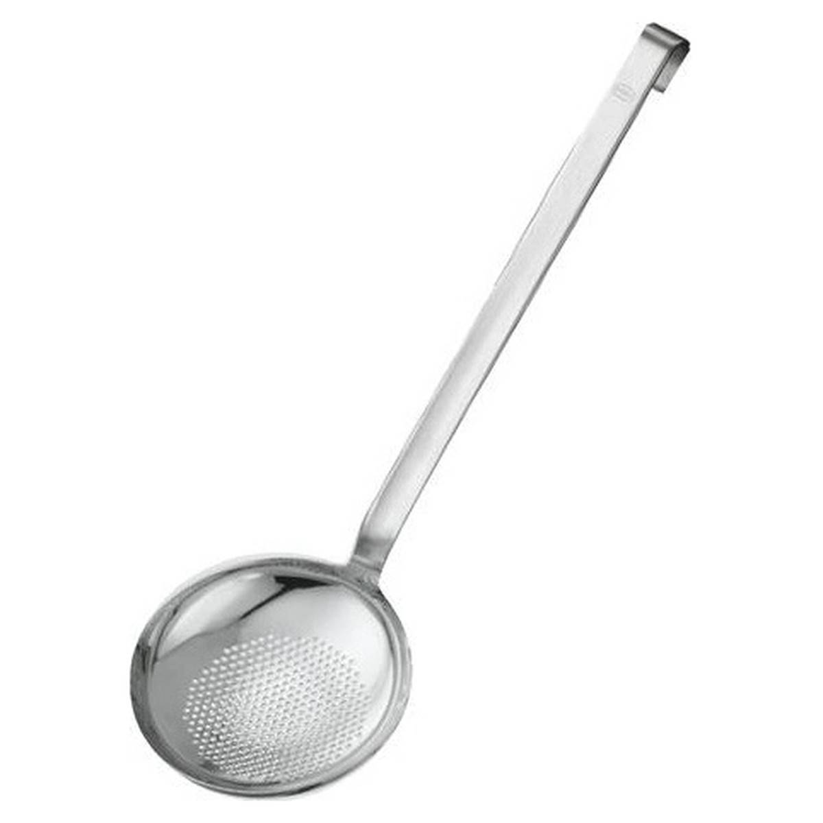 Blanžírovací lžíce vyrobená z nerezové oceli 18/10, vhodná na zavěšení.