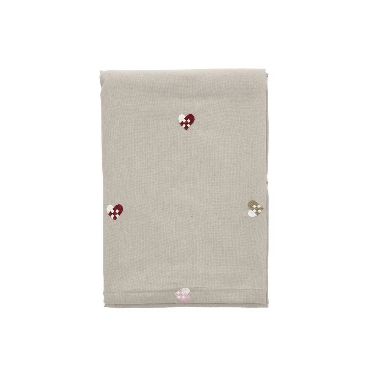 - Zdobení detailní strojovou výšivkou s propleteným motivem srdcí.
