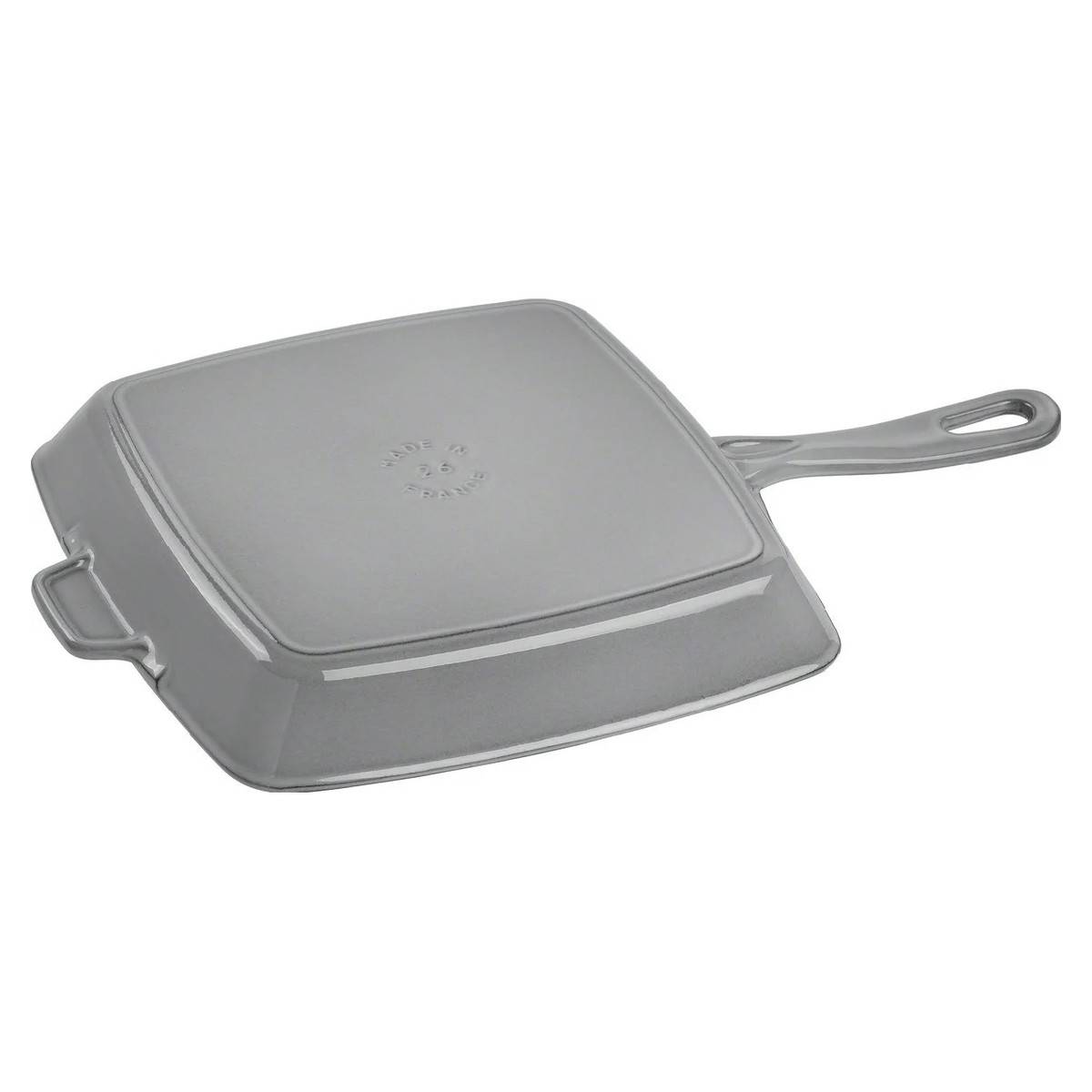 - Robustní čtvercová grilovací pánev značky STAUB, vyrobená z masivní litiny.