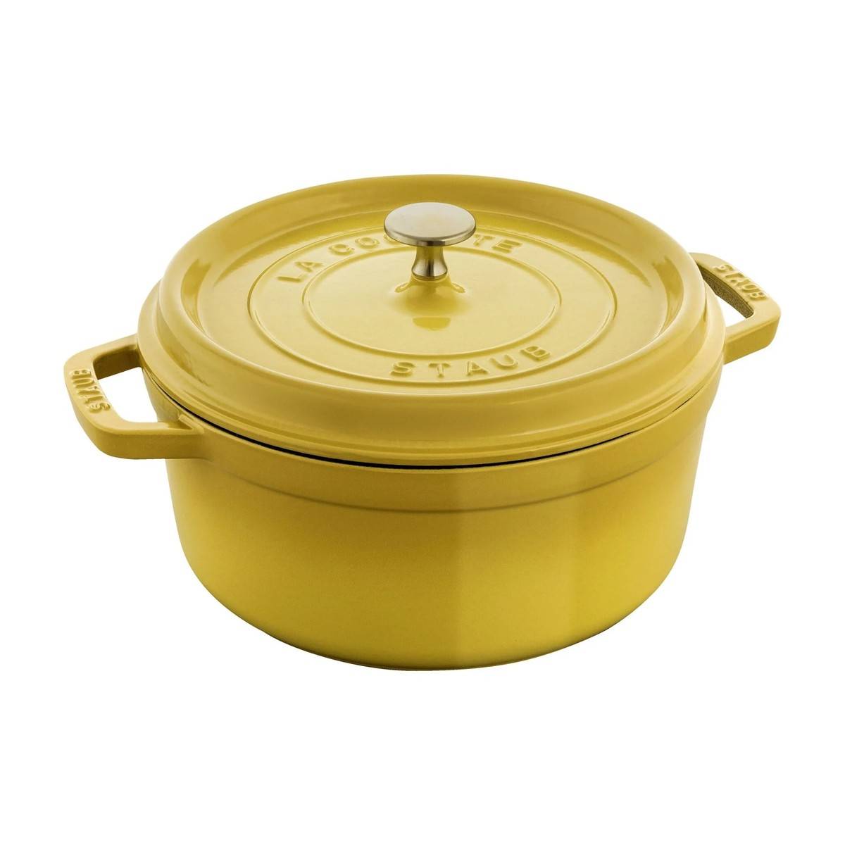 - Ikonický kulatý hrnec STAUB Cocotte ve veselé citronové barvě.