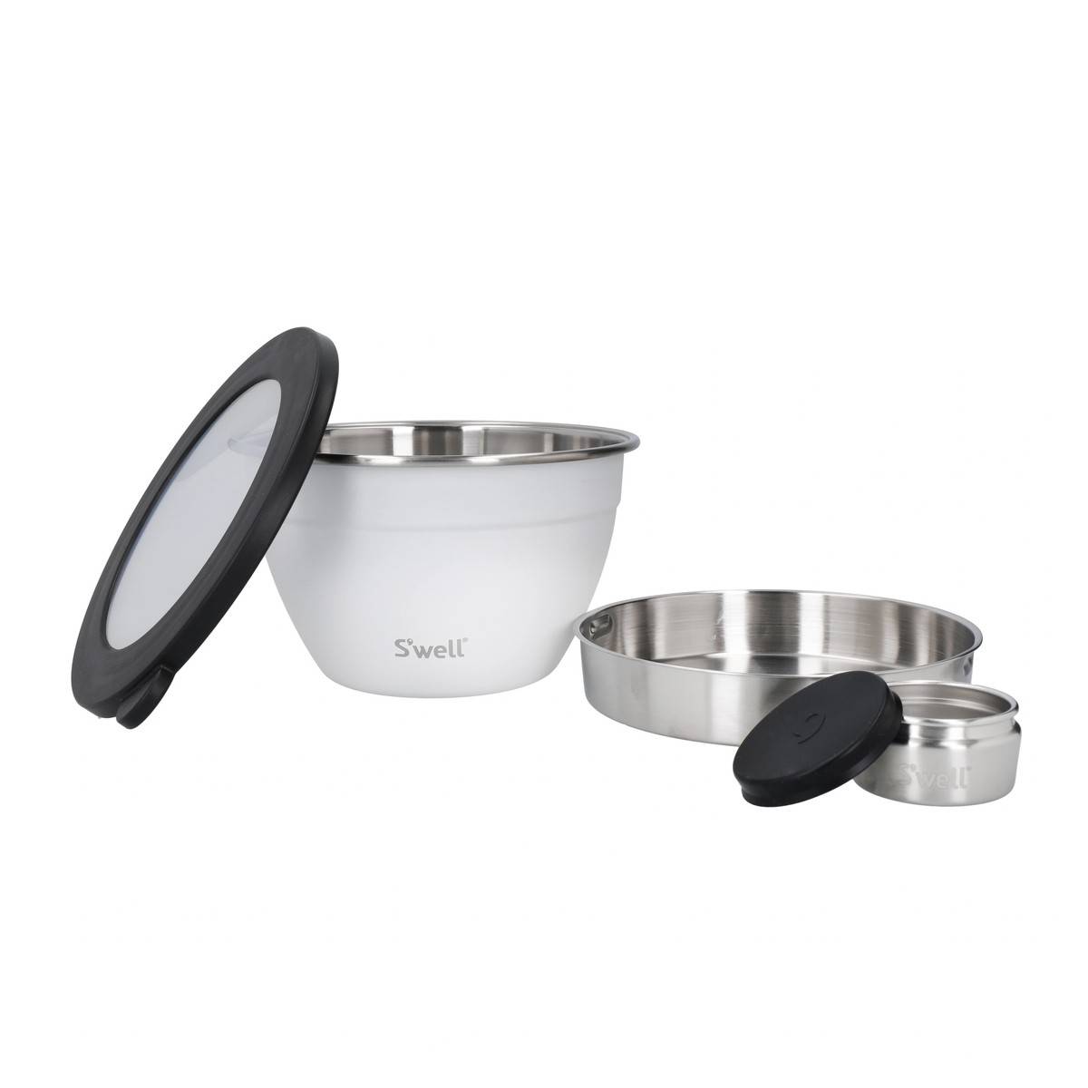 - Uzavíratelné víko a nádobka pomáhají s uspořádáním salátových doplňků, pečiva či příborů.