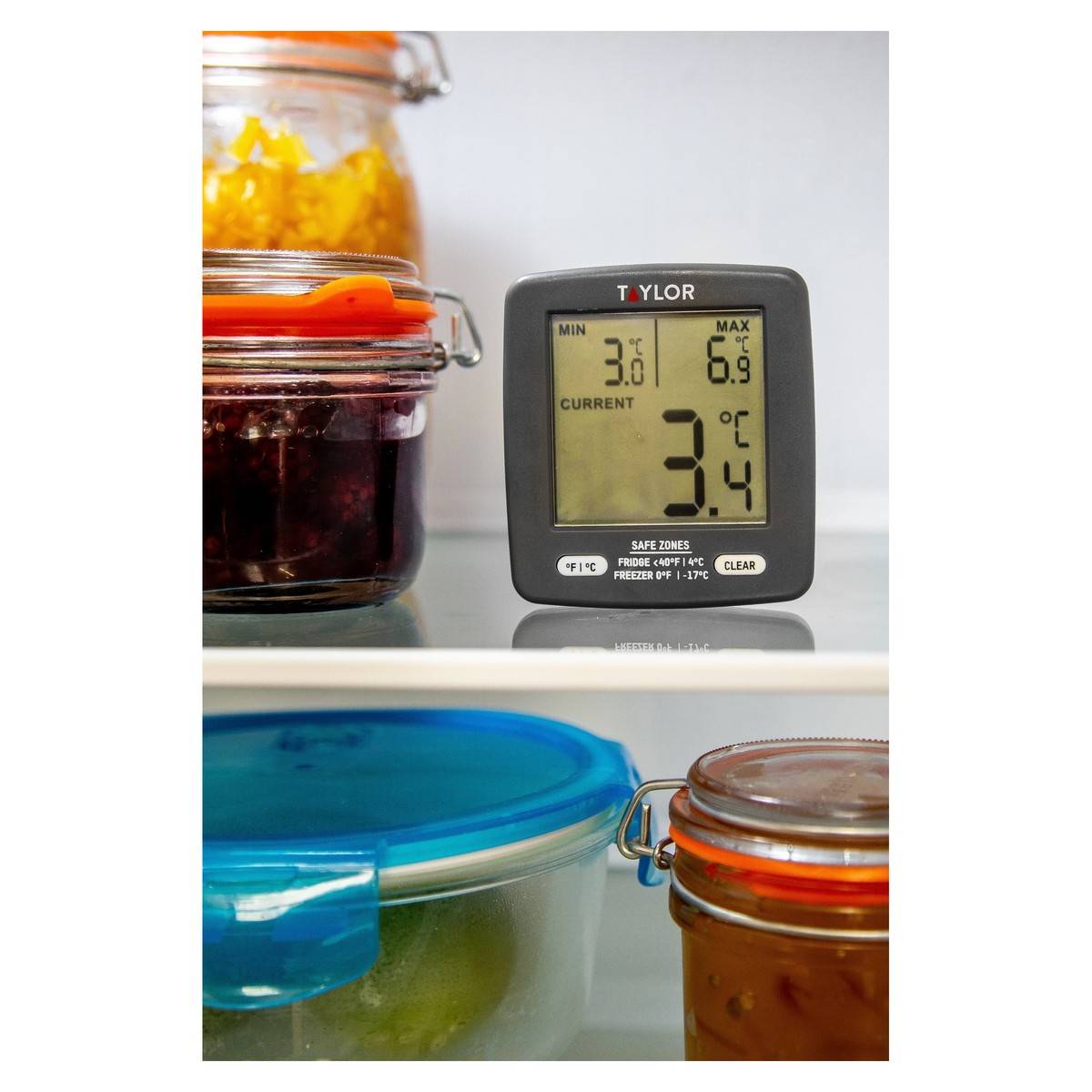 - Velký LCD displej zobrazuje teploty od –20 °C do 60 °C.