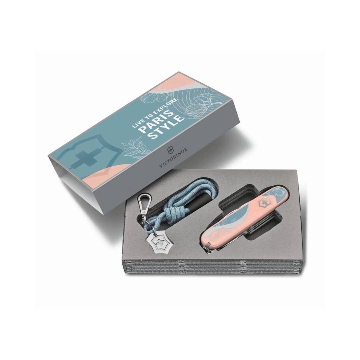 Kapesní nůž Paris Style z kolekce Live to Explore představuje dokonalé spojení jemné ženskosti a praktické kompaktnosti. Elegantní design a 16 užitečných funkcí vám umožní být připraveni na každodenní výzvy i nečekané situace. Díky šňůrce na krk s karabinkou a přívěškem se švýcarským křížem budete mít svůj nůž vždy po ruce a zároveň stylový doplněk. Vše je pečlivě zabalené v elegantní dárkové krabičce, ideální jako dárek pro vás nebo vaše blízké.