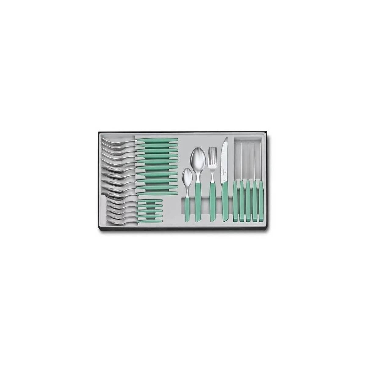 - Součástí balení je po šesti kusech: lžíce, vidličky, nůž s kulatou špičkou a malá lžička.