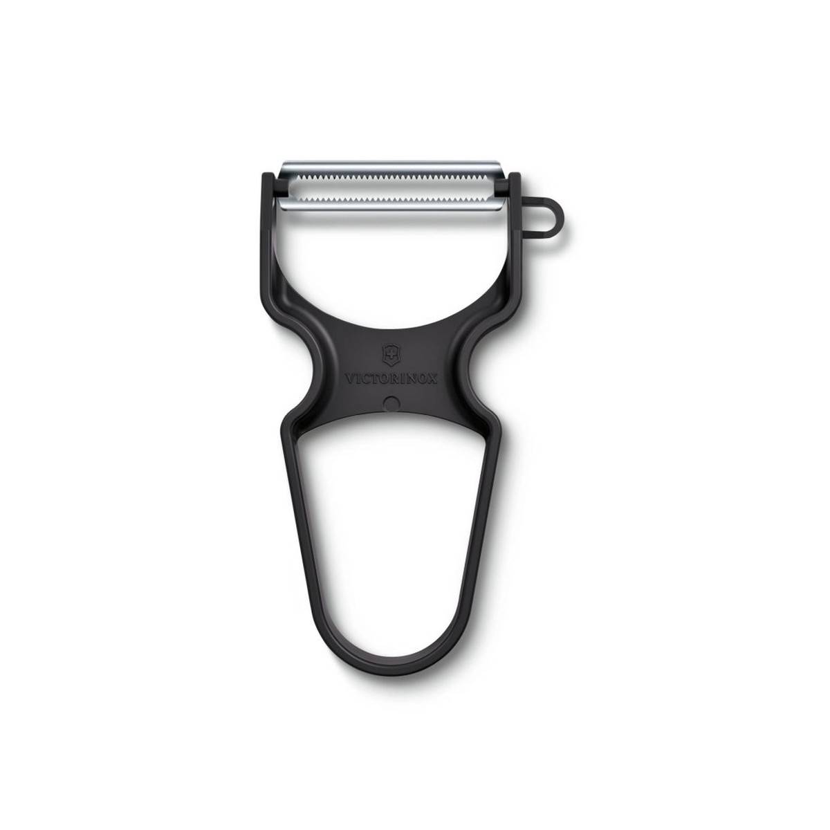 - Ergonomicky tvarovaná škrabka s vroubkovaným ostřím pro rychlé a přesné loupání.