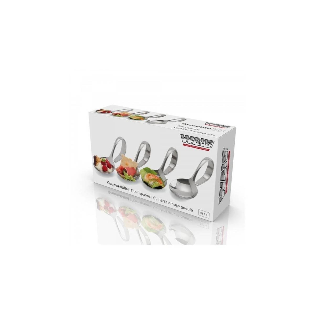 - Čtyřdílná souprava degustačních lžiček určená pro sofistikované servírování malých pokrmů.